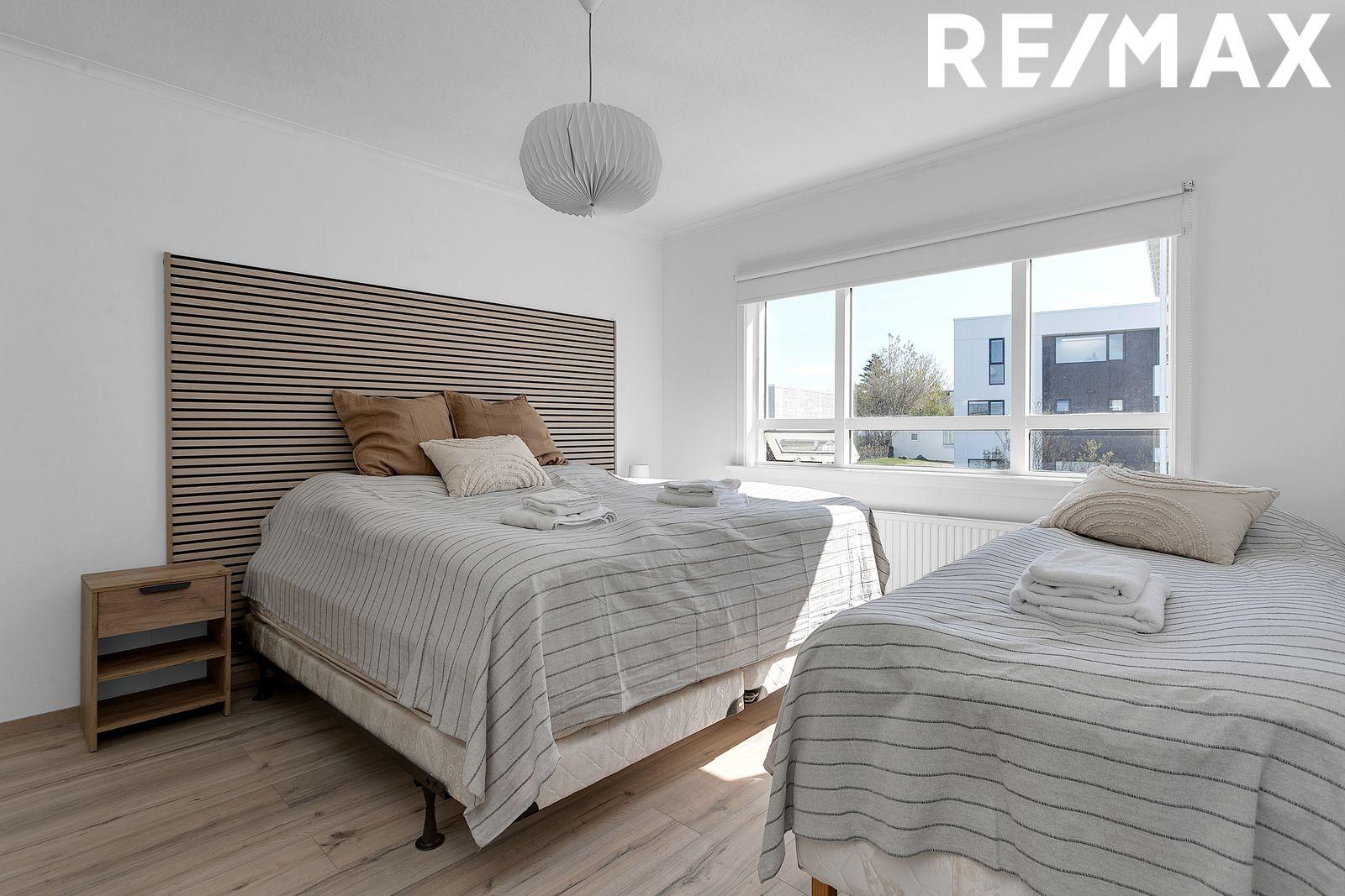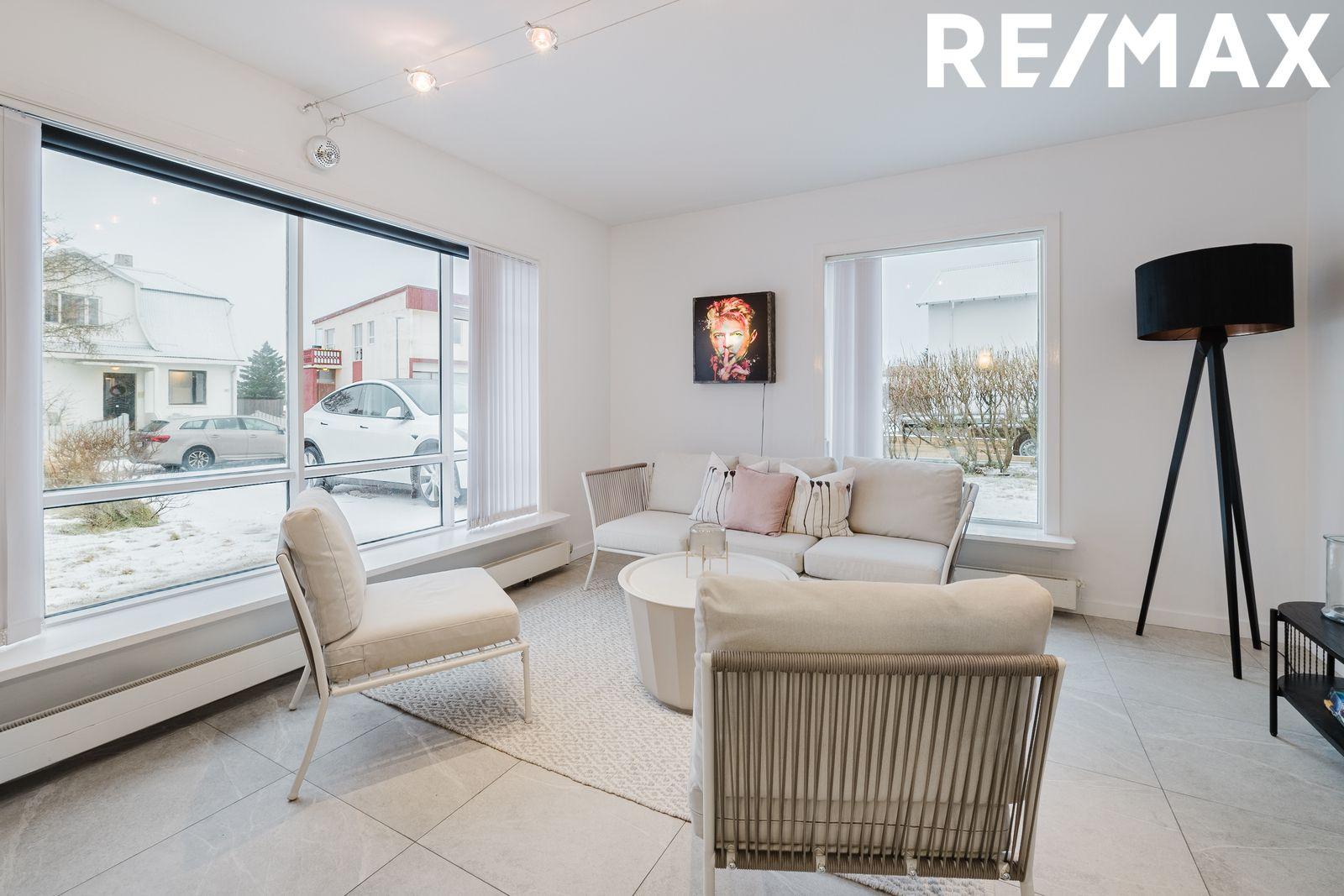 Guðmundur Þór Júlíusson og Ástþór Reynir löggiltir fasteignasalar hjá RE/MAX fasteignasölu kynna í einkasölu:**Tækifæri fyrir verktaka**3 íbúðir í 4 íbúða húsi til sölu þar sem búið er að fá leyfi frá Seltjarnarnesbæ fyrir hækkun á húsinu. Leyfileg heildarstækkun þriggja íbúða er upp á 106,3 fermetra sem skiptist upp í 7,3 fermetra vinstri íbúð niðri, 50,2 fermetra vinstri íbúð uppi og 48,8 fermetra hægri íbúð uppi.