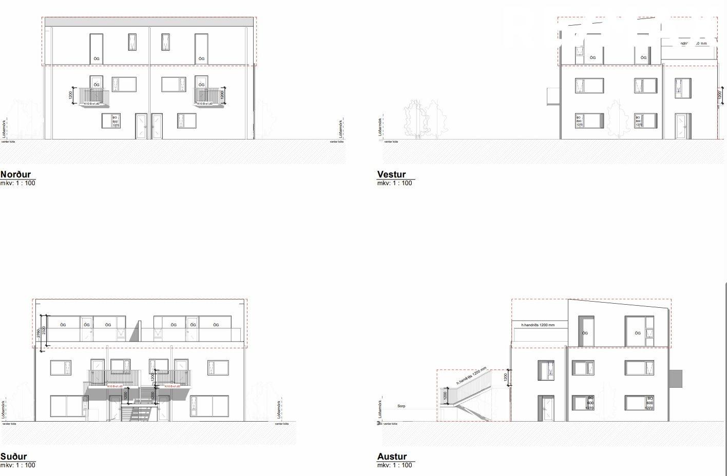 Teikningar frá Arkitekt fyrir breytingum, verkfræðingi fyrir burði og byggingu ásamt raf- og píputeikningum fylgja. Verkfræðiteikningar voru settar upp m.v. að forsmíðaðar einingar væru smíðaðar fyrir breytingu og eru allar leiðbeiningar fyrir verksmiðju í þeim.