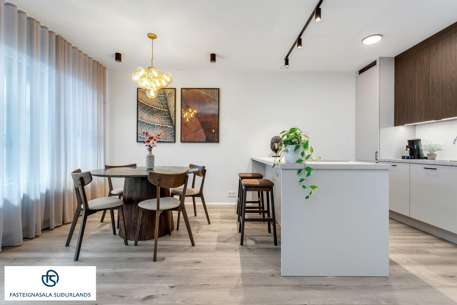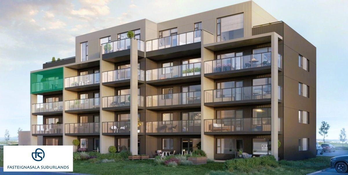 Fasteignasala Suðurlands (s 483 3424) kynnir: Hnjúkamói 16, íbúð 0405. Ný, falleg og björt 94,6m2 endaíbúð á 4.hæð með glæsilegu útsýni. Íbúðin er með 3 stórum svefnherbergjum og björtu alrými með stórum gluggum. Úr alrýminu er utangengt á 13,1m2 timburklæddar svalir sem sem snúa í hásuður.