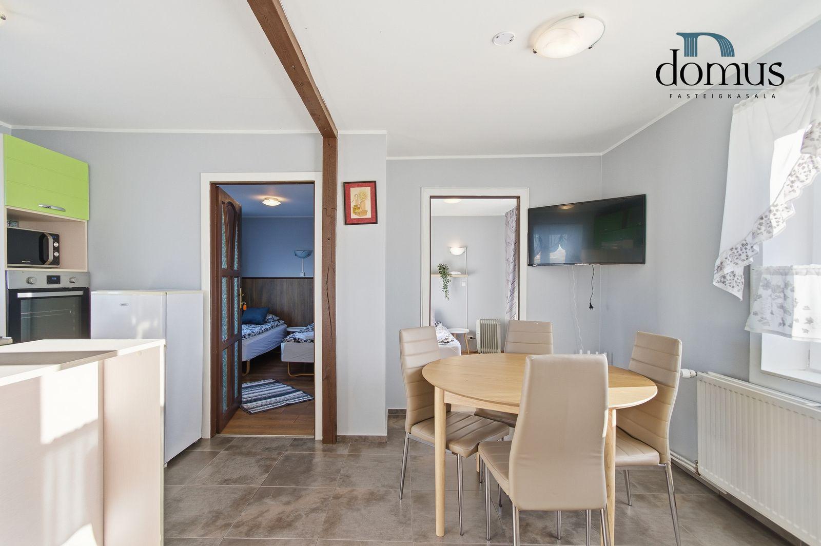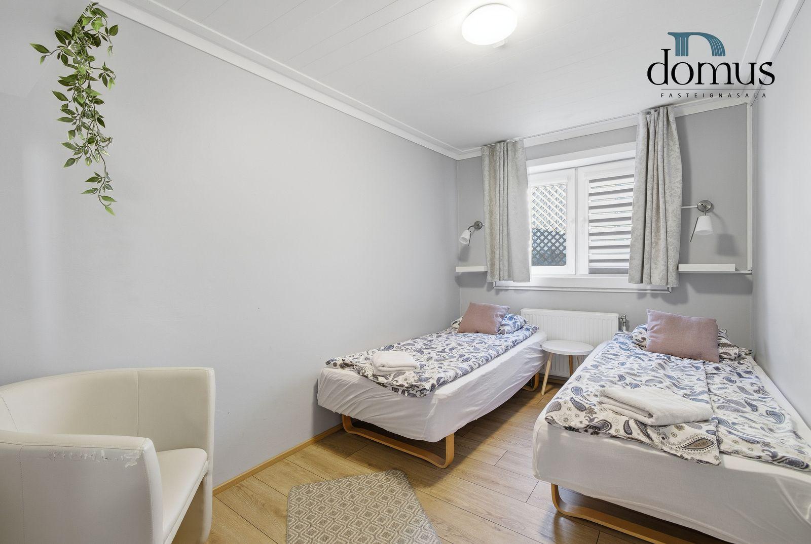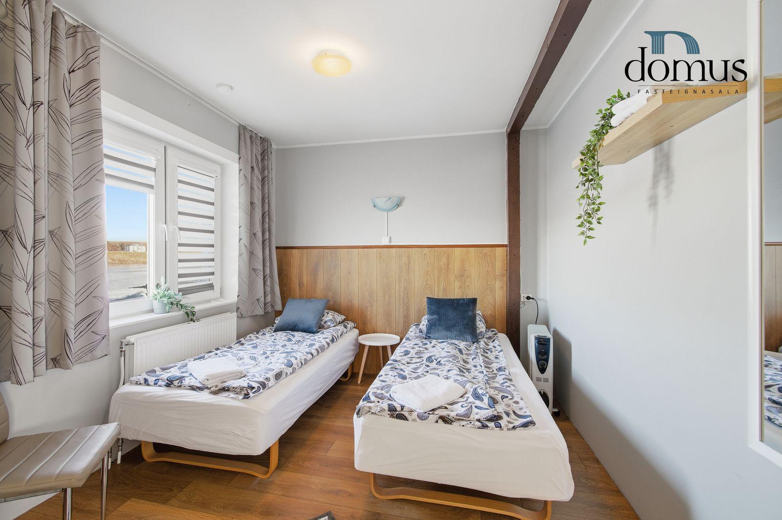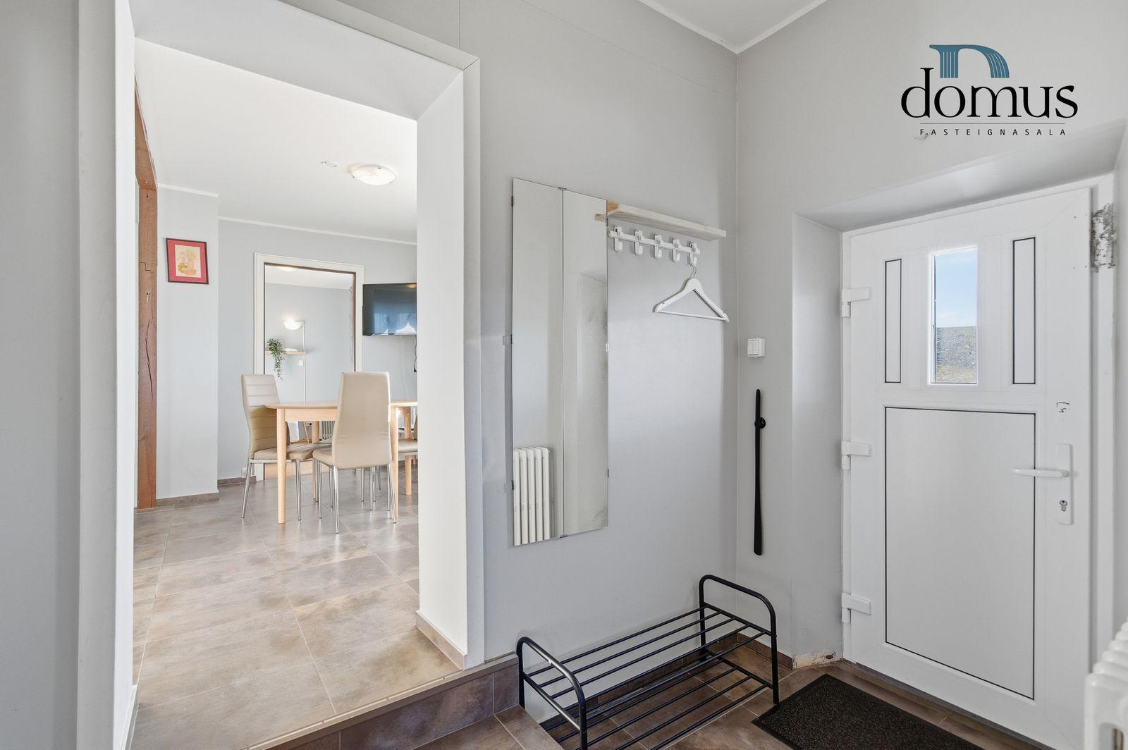 Skoða kynningarmyndband af eigninniÍbúð á neðri hæð:Falleg og vel skipulögð 3 herbergja íbúð í kjallara. Heildarstærð samkvæmt Þjóðskrá Íslands: 51,6 m². Eign þessi er nú nýtt undir ferðaþjónustu en hentar bæði vel sem íbúð og til ferðaþjónustu.