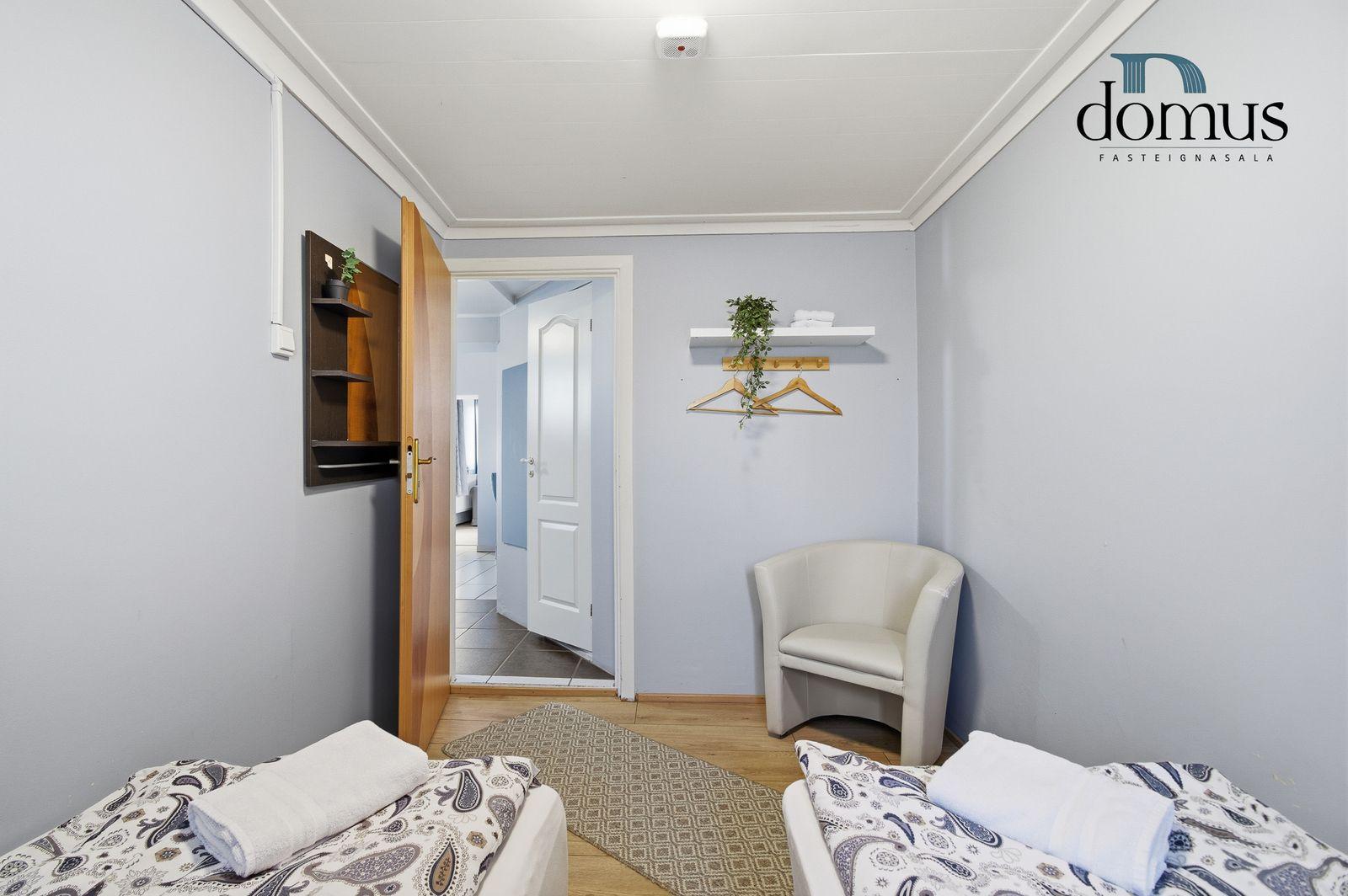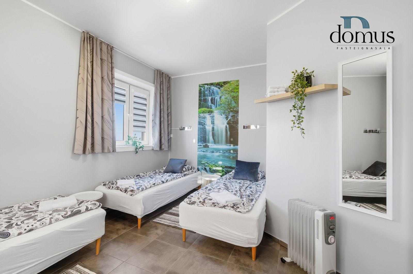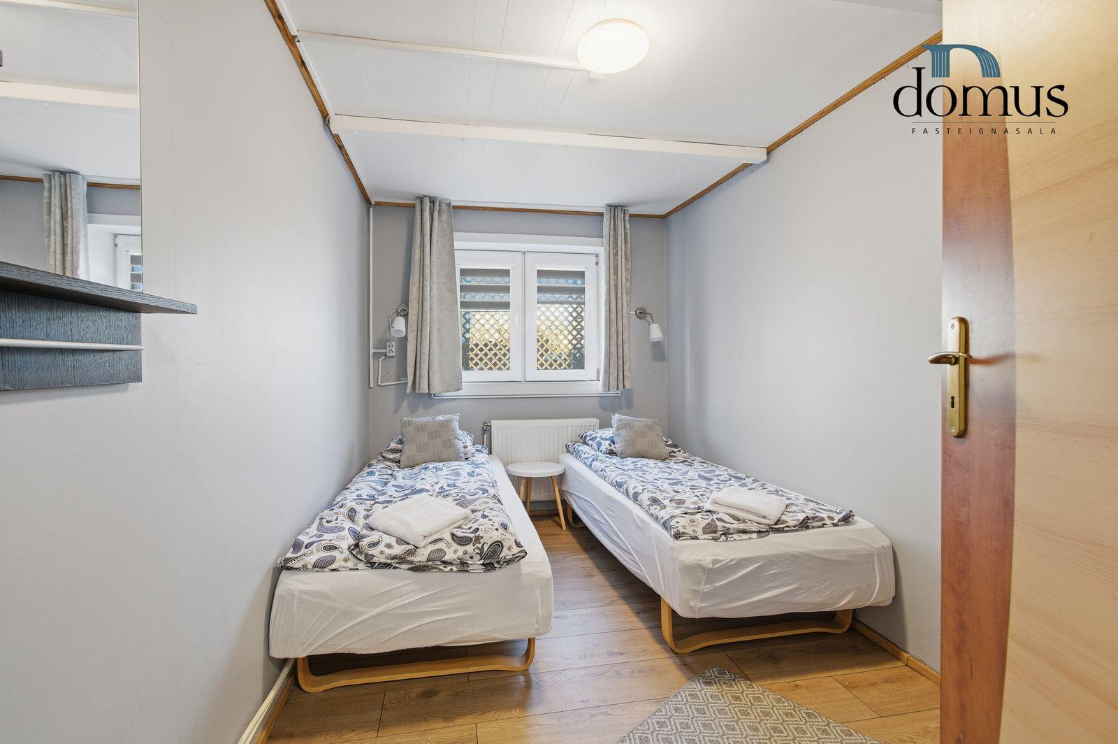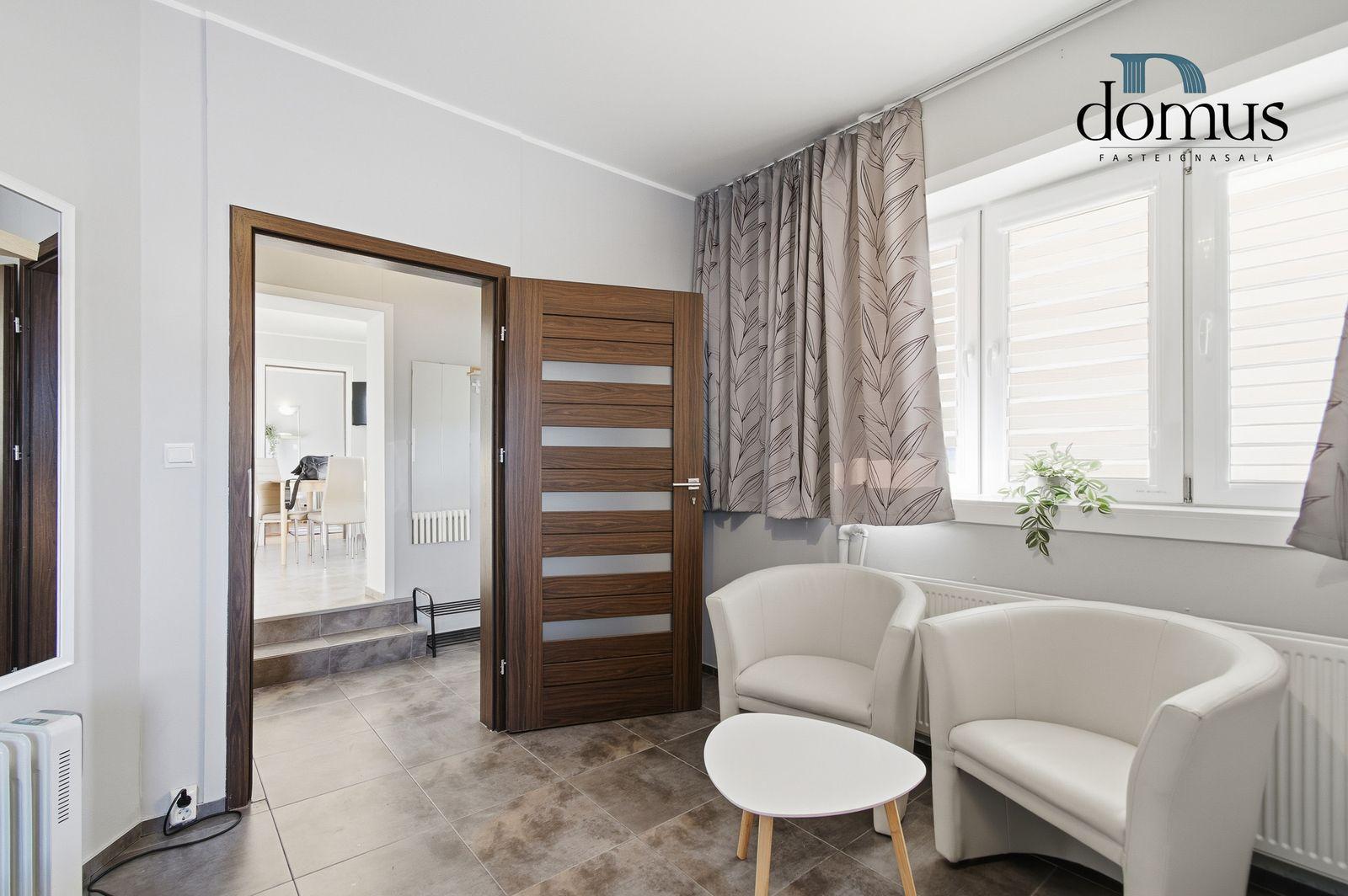 Skoða kynningarmyndband af eigninniÍbúð á neðri hæð:Falleg og vel skipulögð 3 herbergja íbúð í kjallara. Heildarstærð samkvæmt Þjóðskrá Íslands: 51,6 m². Eign þessi er nú nýtt undir ferðaþjónustu en hentar bæði vel sem íbúð og til ferðaþjónustu.