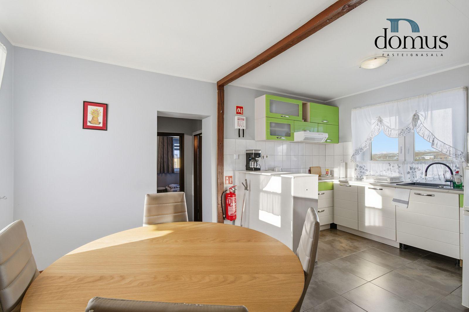 Íbúð á efri hæð:Falleg og vel skipulögð 4 herbergja íbúð á 1. hæð. Heildarstærð samkvæmt Þjóðskrá Íslands: 109,0 m². Eign þessi er nú nýtt undir ferðaþjónustu en hentar bæði vel sem íbúð og til ferðaþjónustu.