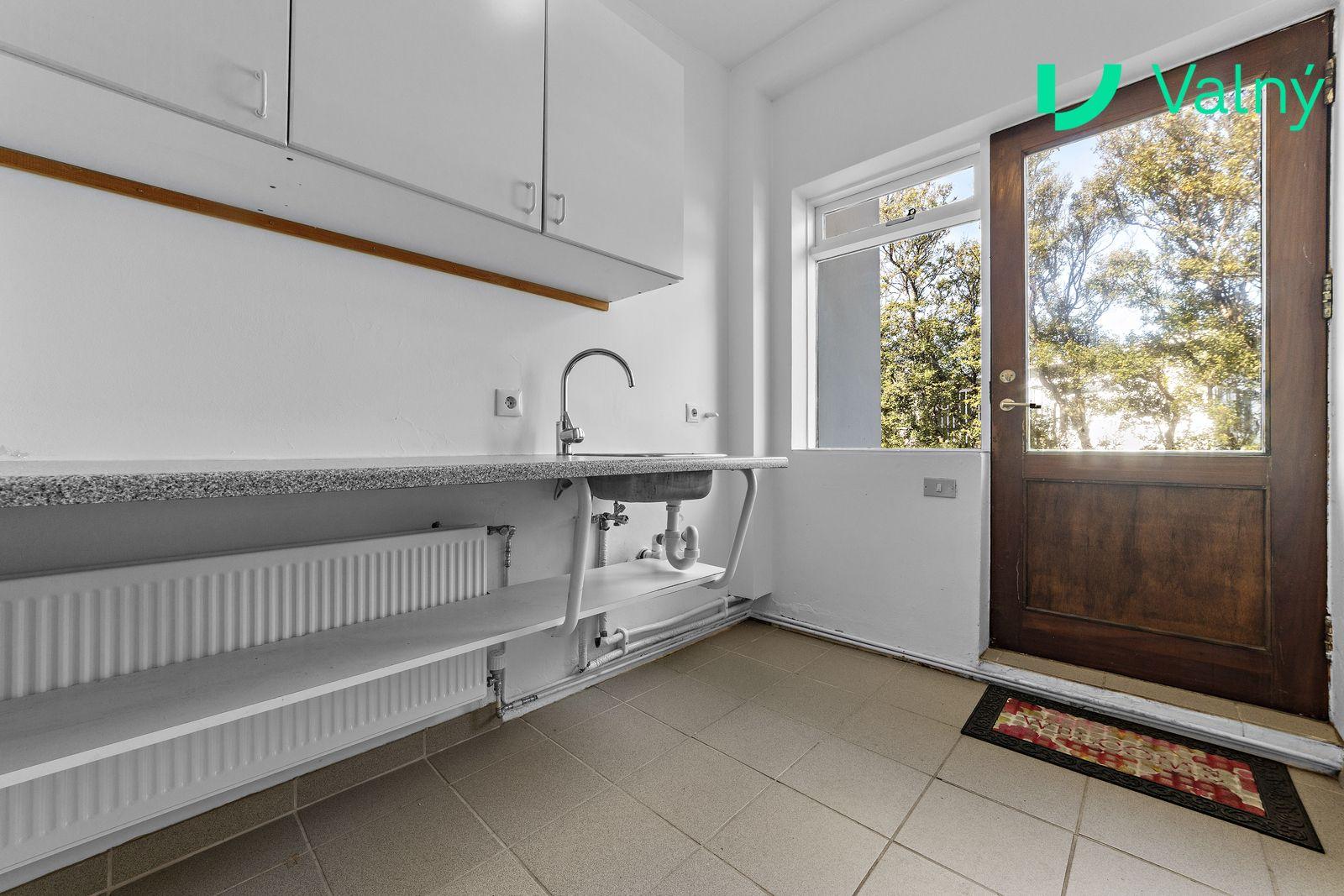 Þvottahús er rúmgott með skolvaski og flísalögðu gólfi. Ásamt geymslu. Stígi upp á loft.