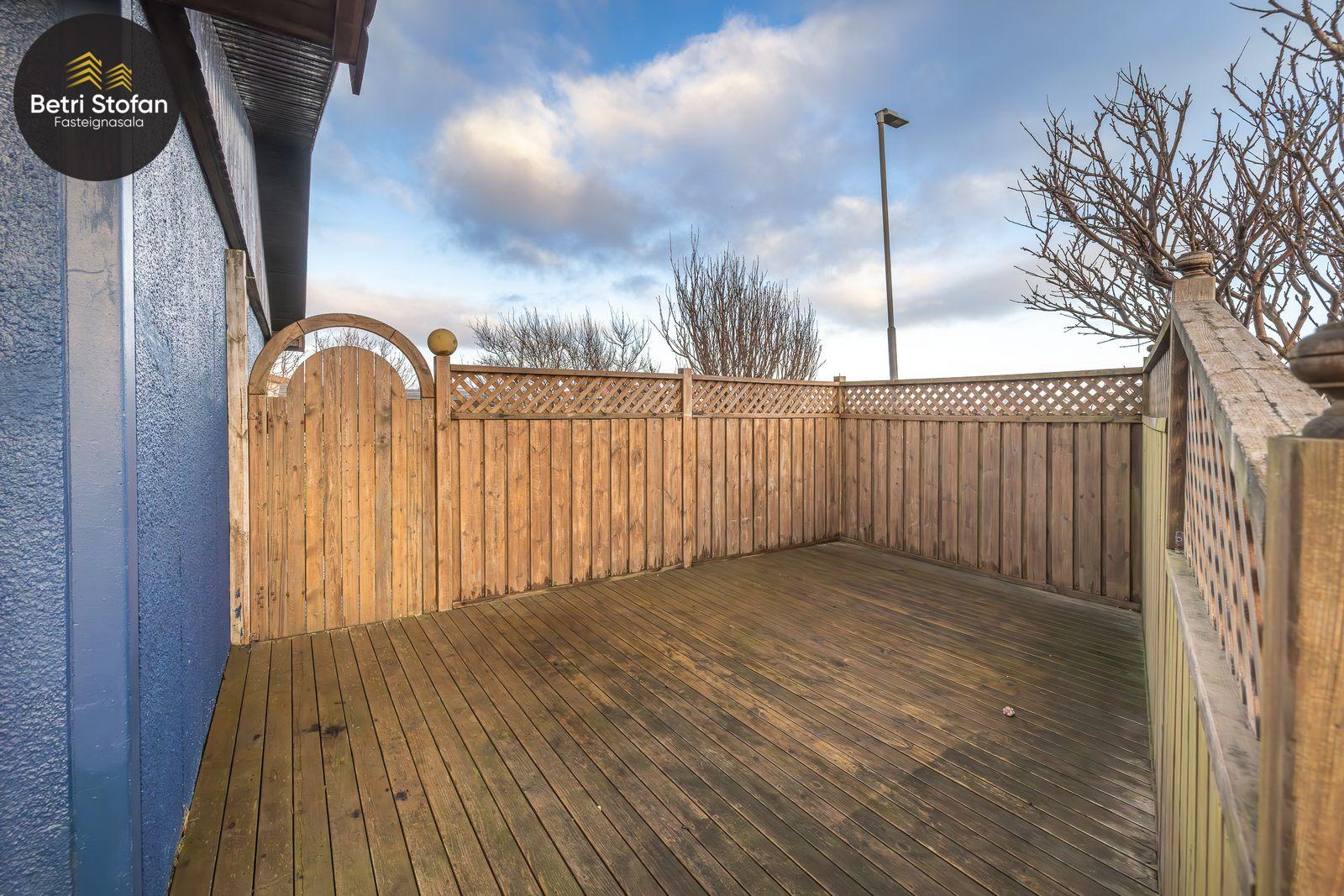 Lóð: Húsið stendur á 913fm lóð með steyptri innkeyrslu, tyrfðum aflokuðum garði í kringum hús með viðarverönd fyrir framan hús til suðvestur ásamt afgirtri viðarverönd til austurs.