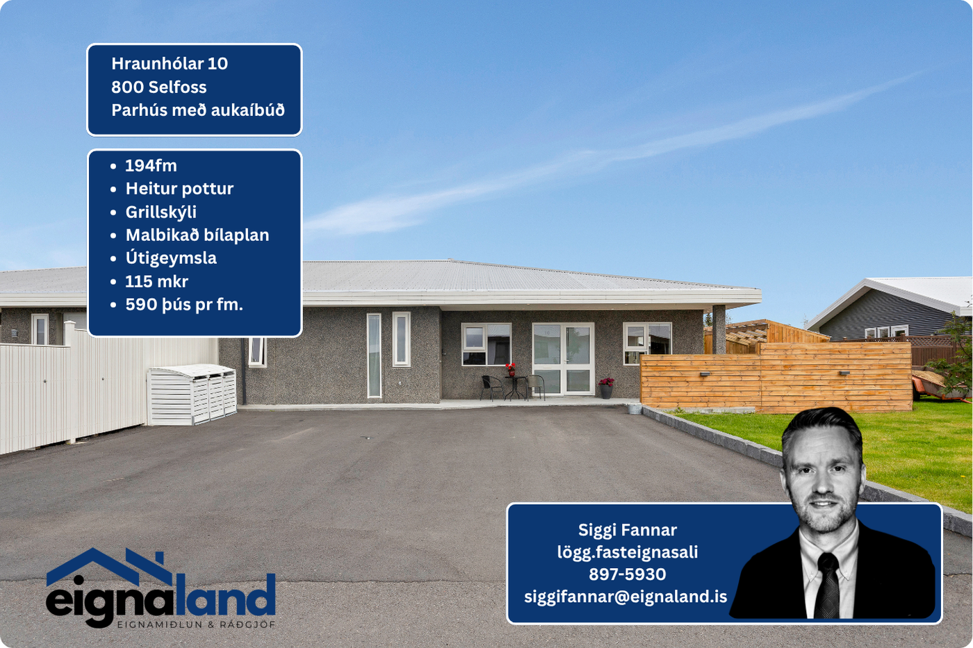 Ef áhugi er á að skoða, vinsamlegast hafið samband við Sigurður Fannar lögg.fasteignsala í síma 897-5930 eða siggifannar@eignaland.is