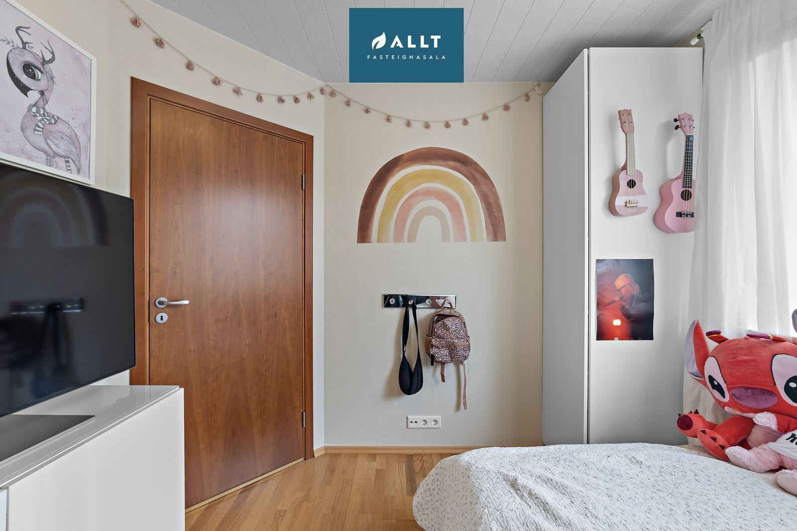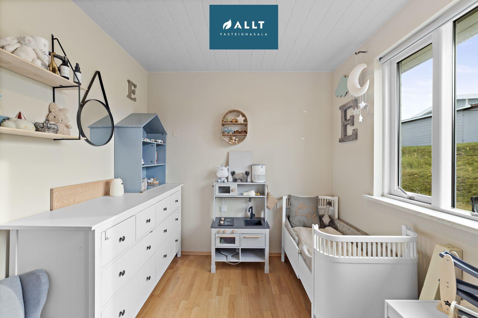 Barnaherbergin eru tvö, bæði með parketi á gólfum.