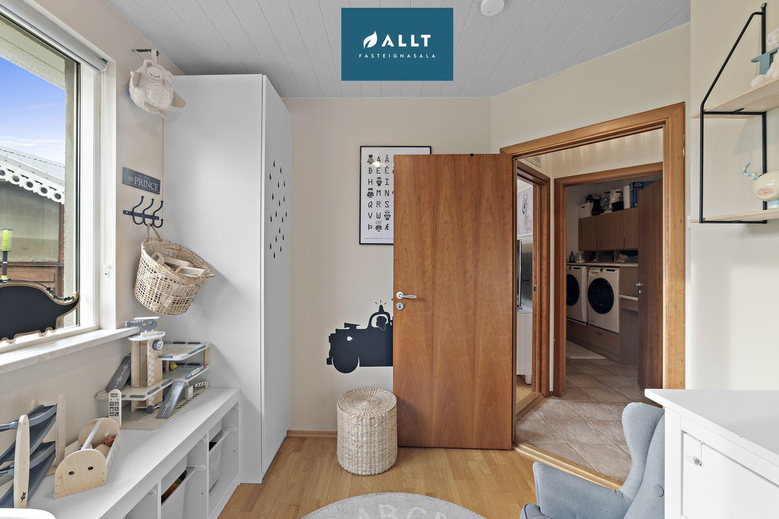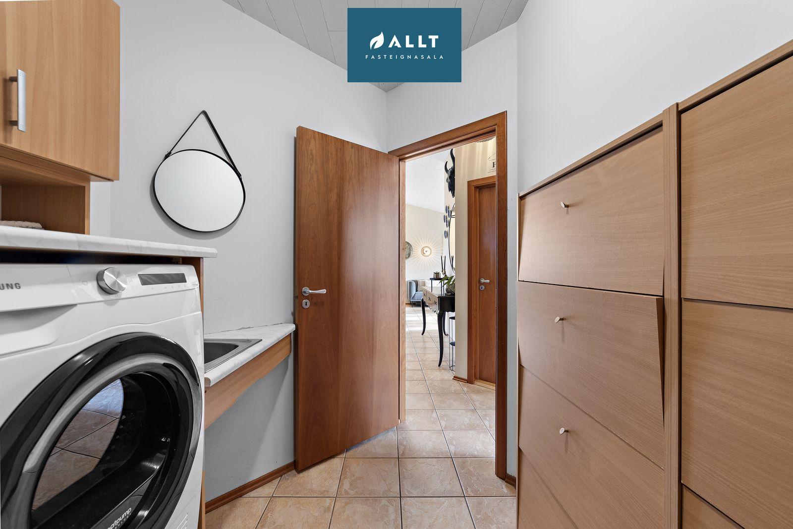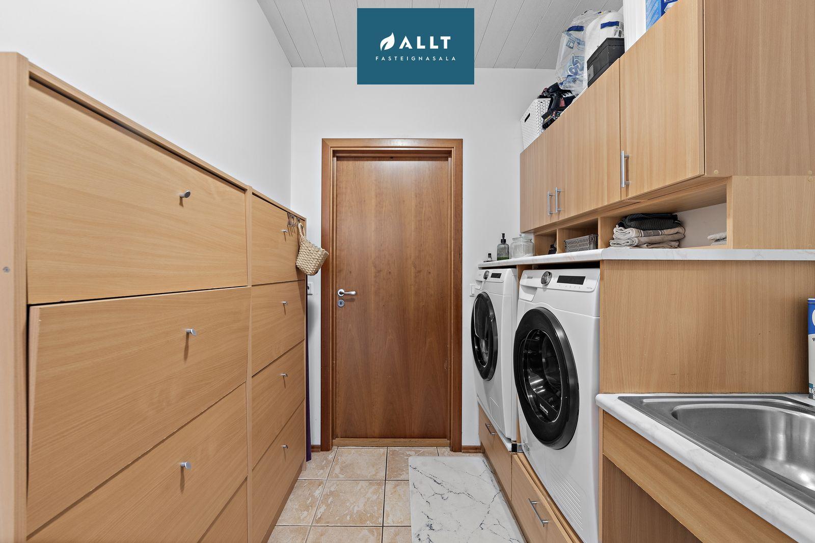 Þvottahús: Flísar á gólfi, góð eikarinnrétting með handlaug, gert er ráð fyrir þvottavél og þurrkara í innréttingu. Innangengt í bílskúr.