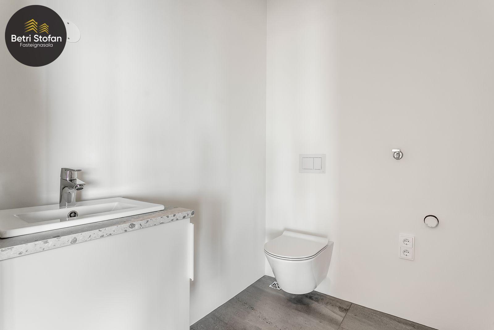 Þvottahús og gestasnyrting er með aðstöðu fyrir þvottavél og þurrkara, upphengt salerni og handlaug