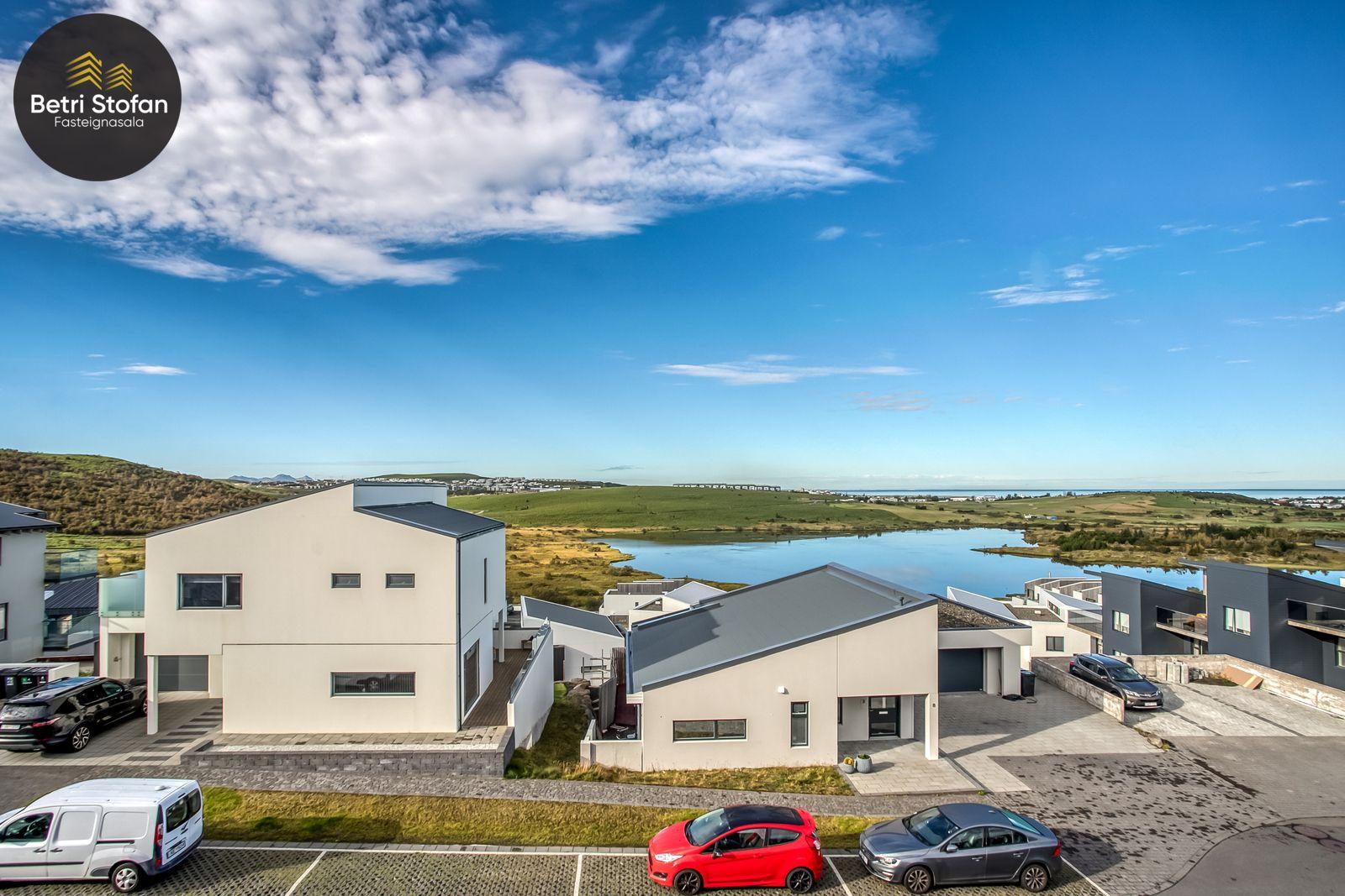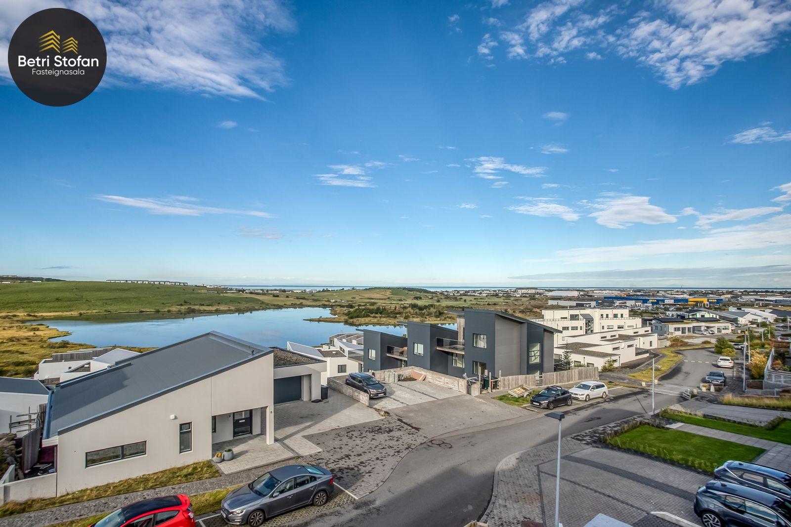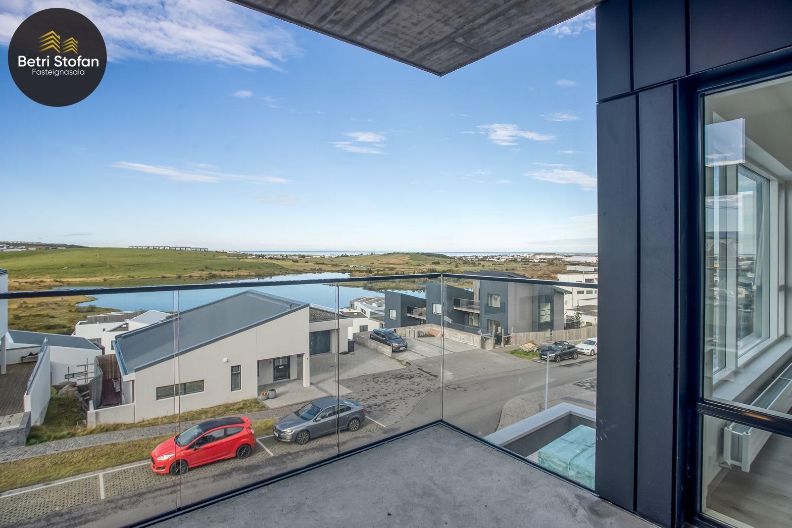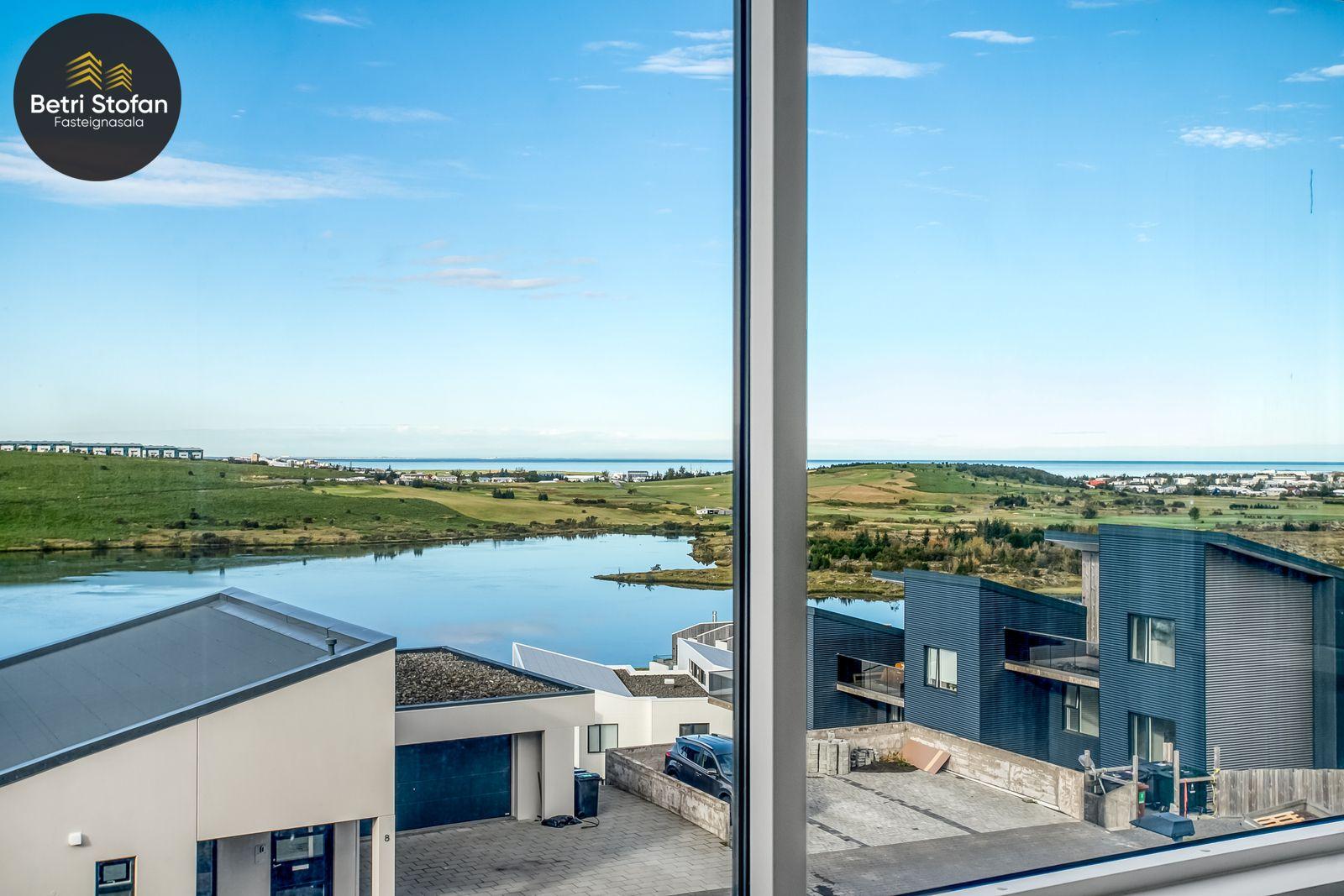 Stofa/alrými er með harðparketi á gólfi, útgengt út á þaksvalir sem snúa til suð-vesturs með útsýni.