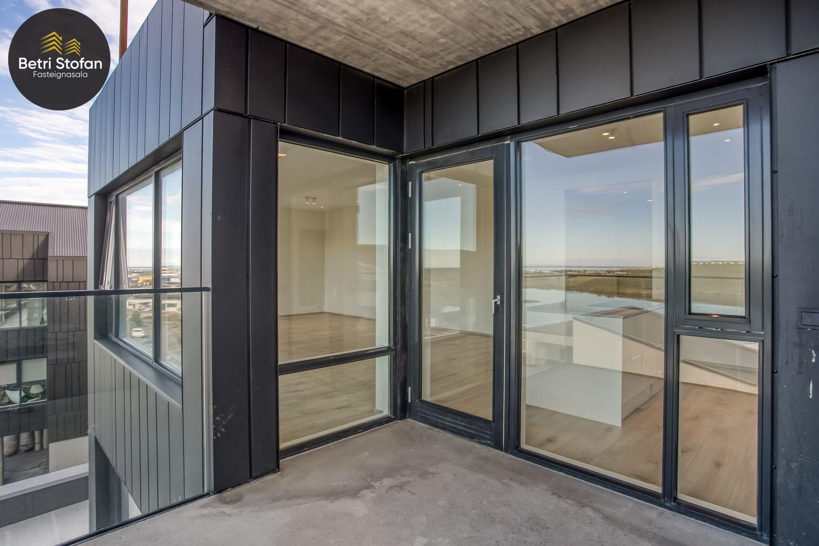 Betri Stofan og Jason Kristinn Ólafsson, sími 7751515 jason@betristofan.is kynna. Hraungata 7, íbúð 204, 128,7 fermetrar íbúð með þaksvölum. Húsið er nýbygging og er að verða tilbúin til afhendingar. Glæsilegar íbúðir og allar með stæði í bílageymslu. Frábært útsýni. Fullbúnar íbúðir. Góð lofthæð. Innréttingar eru frá JKE og tæki frá Ormsson, AEG. Ljós eru innbyggð að hluta, kubbaljós, ljósakúplar. Baðherbergi eru flísalögð, bæði veggir og gólf. Afhending er október - nóvember 2025