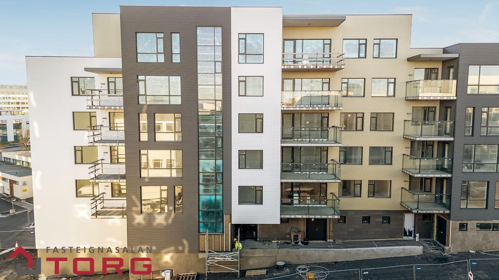 Íbúðin sjálf verður afhent án gólfefna, nema á baðherbergi og í þvottahúsi.