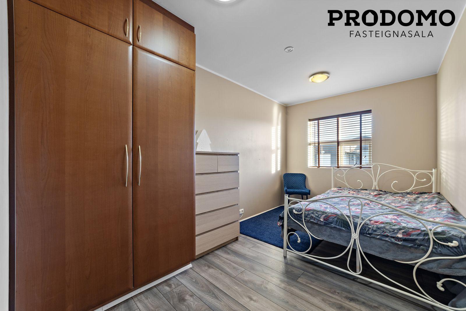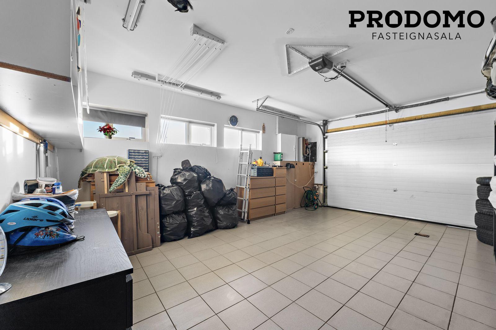 Bílskúr er með flísar á gólfi en stúkað hefur verið af auka herbergi/geymslu í bílskúr. Herbergið hefur útidyrahurð.