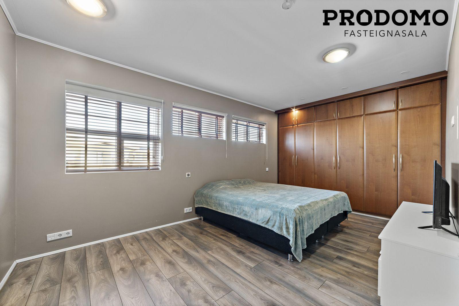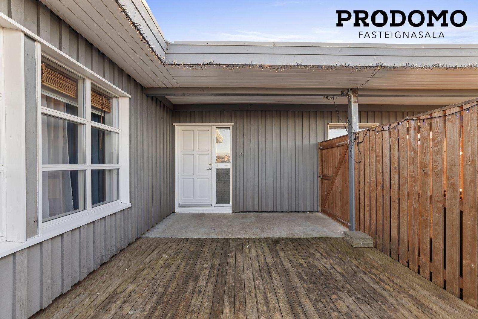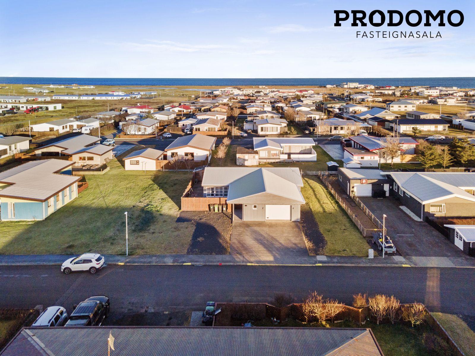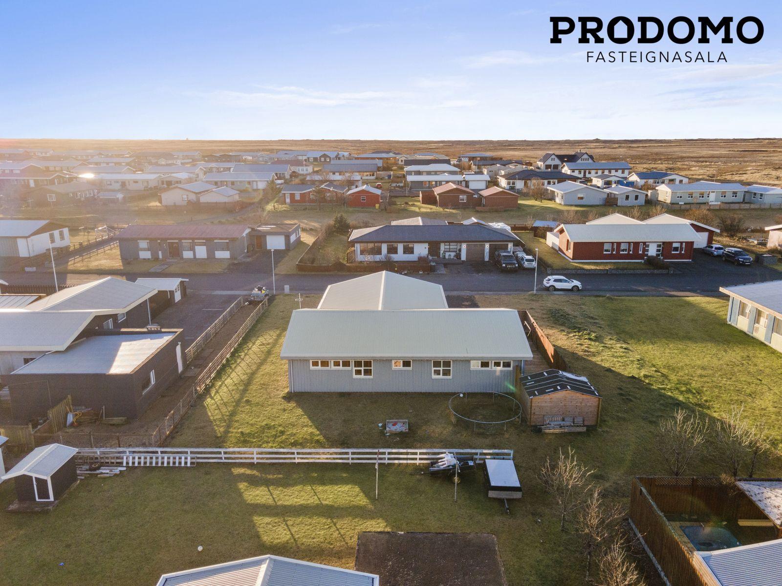Eignin skiptist í forstofu, þvottahús, rúmgóðan bílskúr með herbergi, hol, þrjú svefnherbergi, rúmgott baðherbergi ásamt eldhúsi og stofu. Sólpallur með heitum pott ásamt geymslu skúr. Steypt bílaplan með snjóbræðslu og lóð tyrfð.