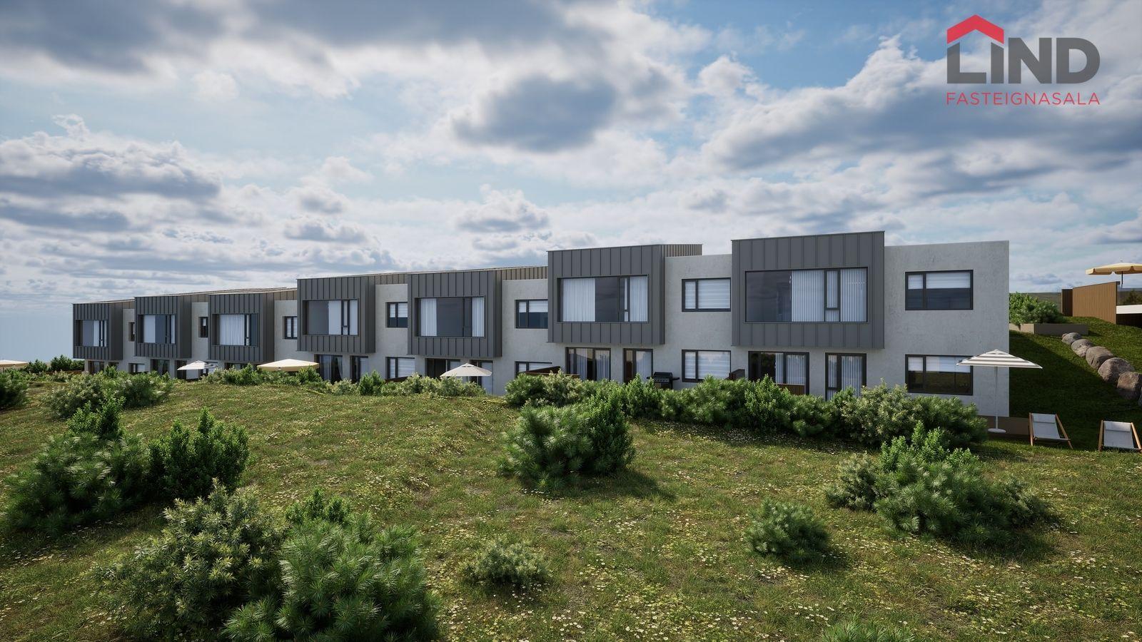 burstuðu Lunawood sólpöllum og girðingum. Aðgengi verður hellulagt með snjóbræðslu samkvæmt lagnateikningum. Gróðurbeð verða grófjöfnuð en gróður fylgir ekki. Ídráttur fyrir rafbílahleðslu verður lagður.