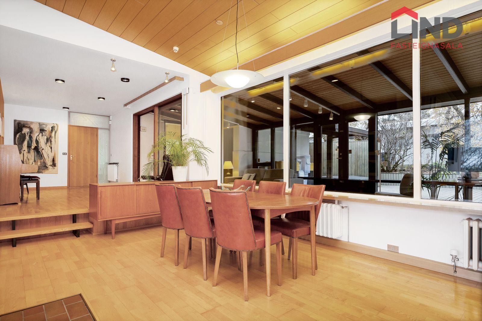 LIND fasteignasala kynnir fallegt og vel skipulagt einbýli á einni hæð með bílskúr við Fornastekk 10 í Reykjavík. Fimm svefnherbergi, stórar, samliggjandi stofur með mikilli lofthæð, stórt og bjart eldhús og sér þvottahús. Baðherbergi og gestasnyrting. Stór sólstofa er fyrir framan stofur þaðan sem útgengt er á skjólgóðan og glæsilegan pall sem hannaður var af Stanislav Bohic. Heitur pottur og útisturta. Þakið var málað 2025. Húsið stendur innst í lokuðum botnlanga í rólegu og fjölskylduvænu hverfi. Frábær staðsetning þaðan sem stutt er í fallegar gönguleiðir og alla helstu þjónustu.