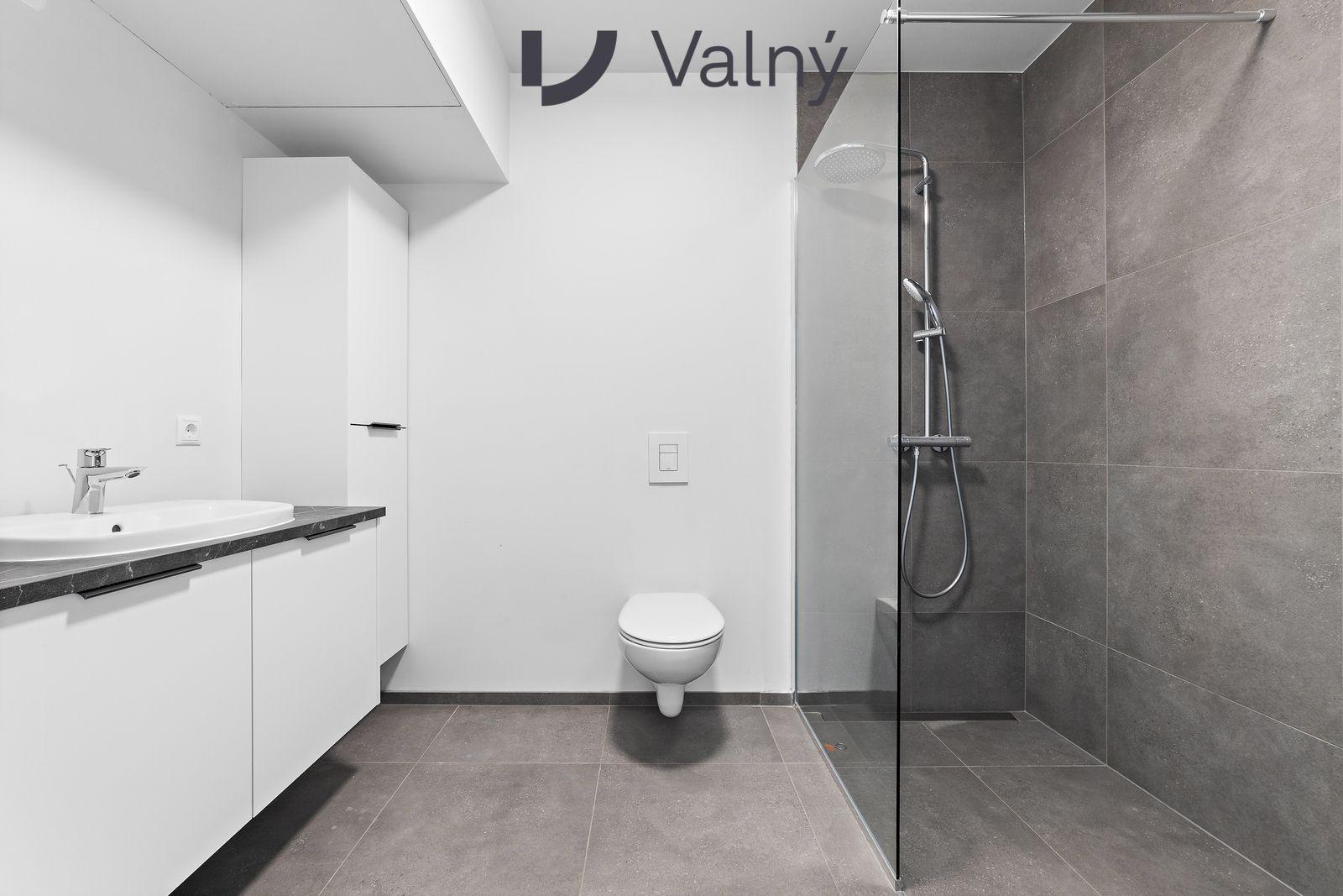 Baðherbergi flísalagt (30×60 cm eða 60×60 cm þar sem við á) á gólfi og veggjum að hluta. Upphengt salerni, handklæðaofn og flísalögð walk-in sturta. Speglar fylgja ekki.