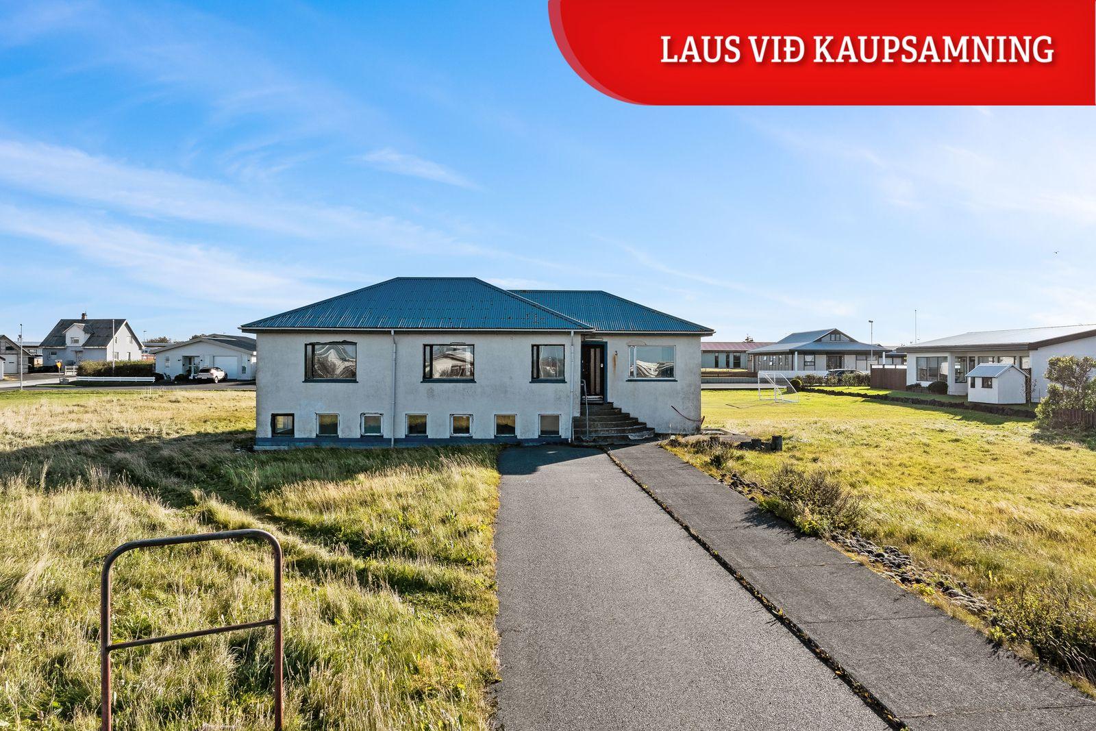 Húsið getur fengist leigt til sex mánaða, leiguverð er kr. 700.000.Nánari lýsing: Húsið, sem er staðsteypt er byggt 1943 og skráð skv. fasteignaskrá 257,6fm er staðsteypt, hæð og kjallari. Upphaflega er húsið nýtt sem einbýli en í dag