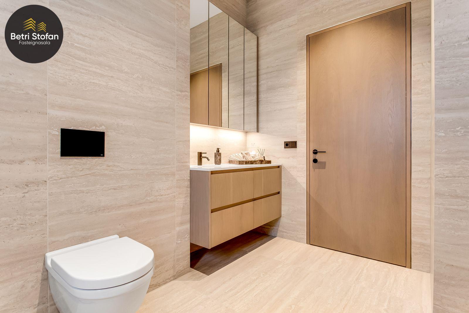 Eldhús er vel útbúið, sérsmíðaðar Voke III spónlagðar eikar innréttingar með innfelldum gripum, á borðplötum er kvarts steinn. Vönduð tæki eru í elhúsi innbyggður Siemens ísskápur, uppþvottavél og vínskápur. Gaggenau ofn og sambyggður ofn/örbylgjuofn (Combi ofn) í vinnuhæð, helluborð með innbyggðri viftu, eldhús- og blöndunartæki að vandaðri gerð. Íbúðin skilast án gólfefna utan baðherbergja og þvottahús sem skilast flísalögð en hægt er að semja um gólfefni eins og eru t.d. í sýniingaríbúð 412 í sömu byggingu.