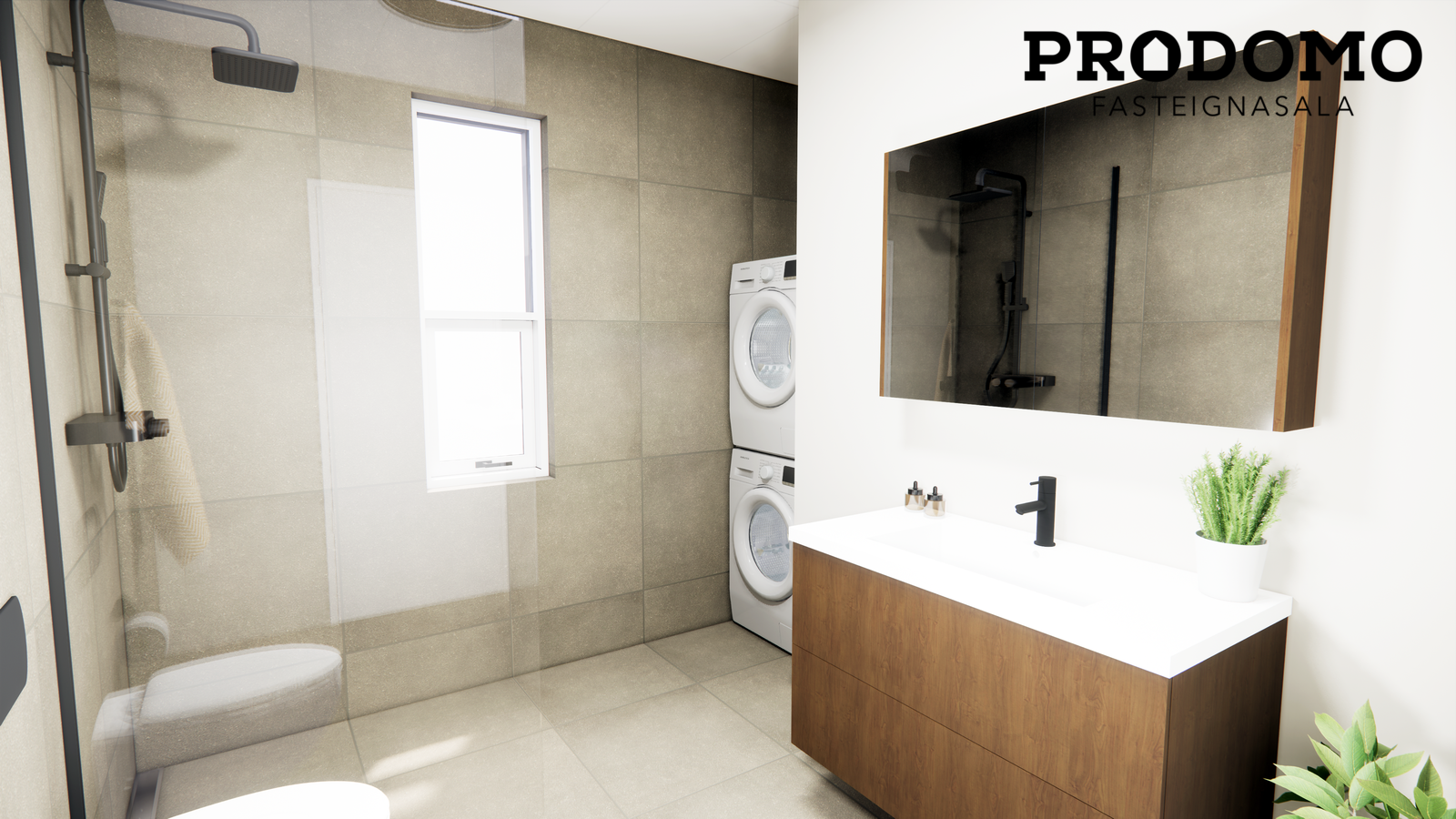 Tjarnabraut 2 Glæsilegt staðsteypt hús sem er einangrað að utan og klætt með báruðu áli. Svalahurðir og gluggar úr álklæddu timbri. Eignirnar skilast fullfrágengnar að utan sem innan. Íbúðirnar eru með sérsmíðuðum innréttingum og faskápum frá Parka. Litasamsetning er hnota með svörtum höldum. Vönduð tæki í eldhúsi frá Electrolux, span helluborð. Á baðherbergjum eru flísar á gólfi og tveimur veggjum. Eignirnar eru vel skipulagðar. Stétt við innganga er hellulögð og gönguleiðir með snjóbræðslukerfi. Bílastæði verða malbikuð og á lóð verður hjólaskýli. Frábær staðsetning í nálægð við skóla og leikskóla ásamt verslun og þjónustu. Samgöngur til og frá svæðinu eru auðveldar og örstutt er á Reykjanesbraut.