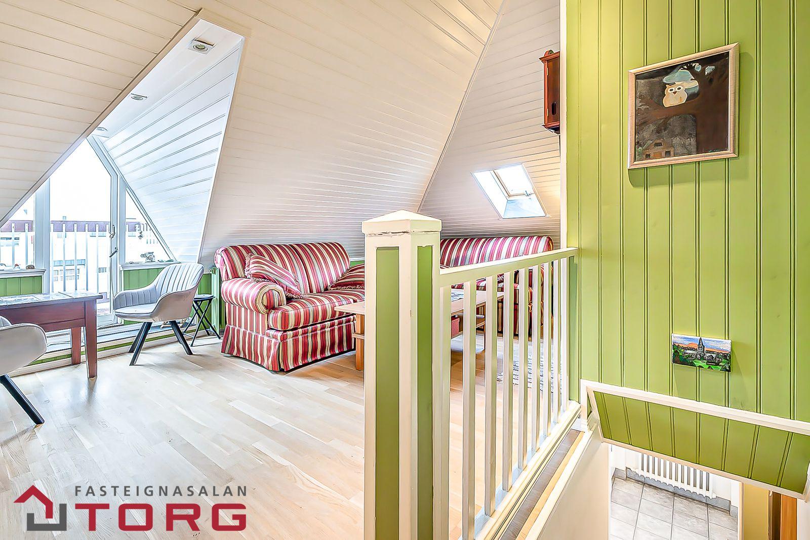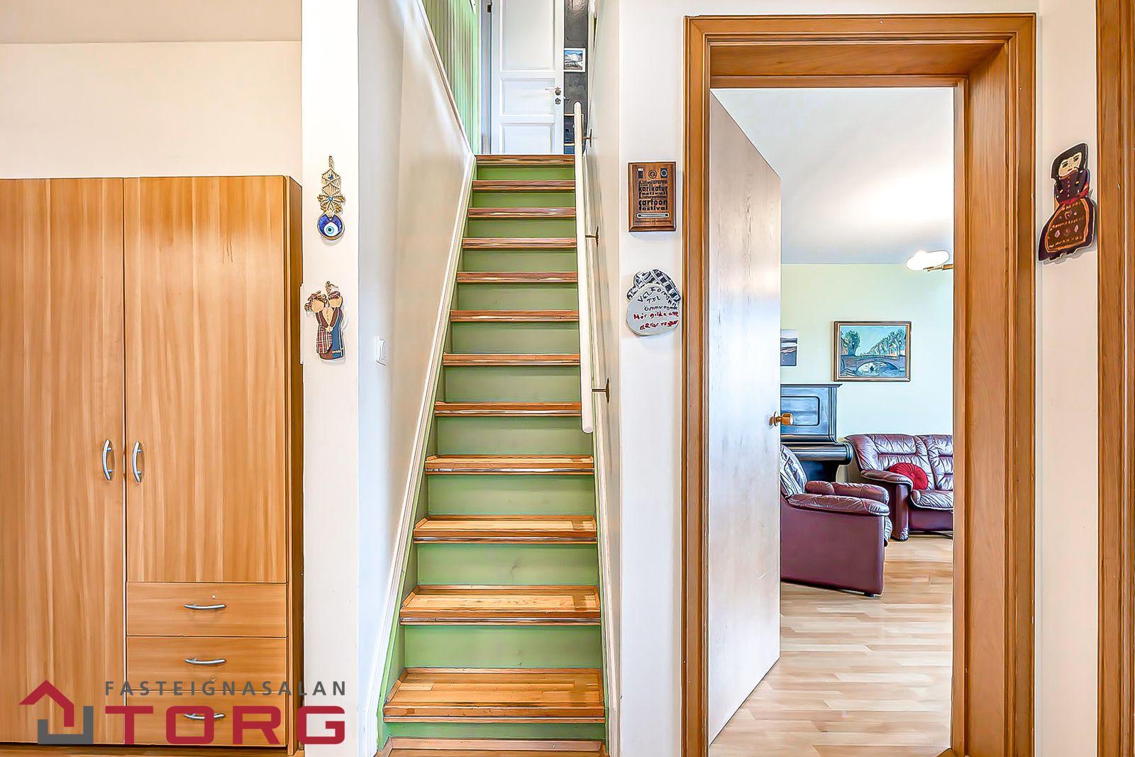 efri hæð sem var öll standsett fyrir 15 árum að sögn eiganda og mikið í það lagt. Efri hæð er að hluta undir súð og því töluvert stærri en skráðir fermetrar segja til um.