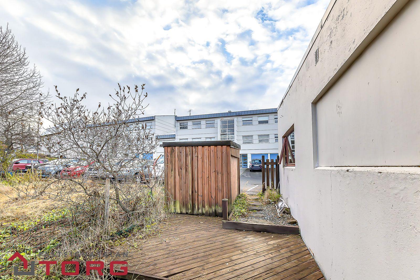 2008 - Byggður skúr fyrir garðáhöld og pallur fyrir utan hann. (1. og 2. hæð sameiginlega)