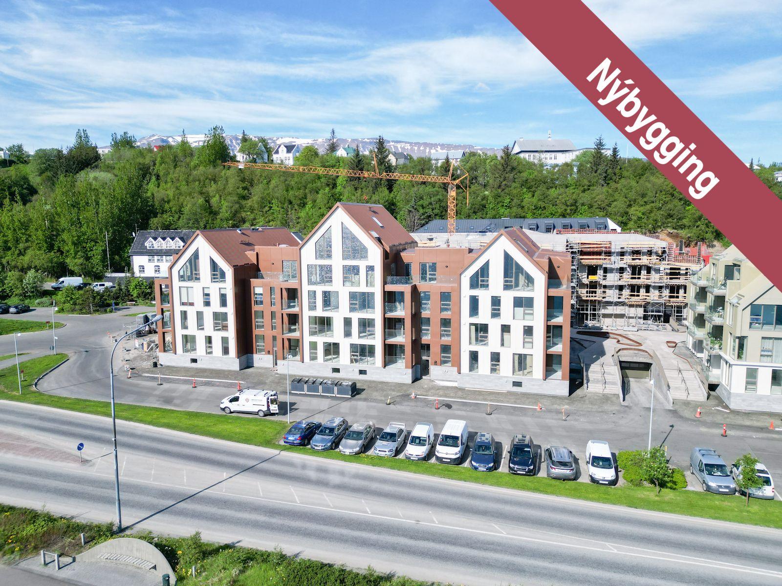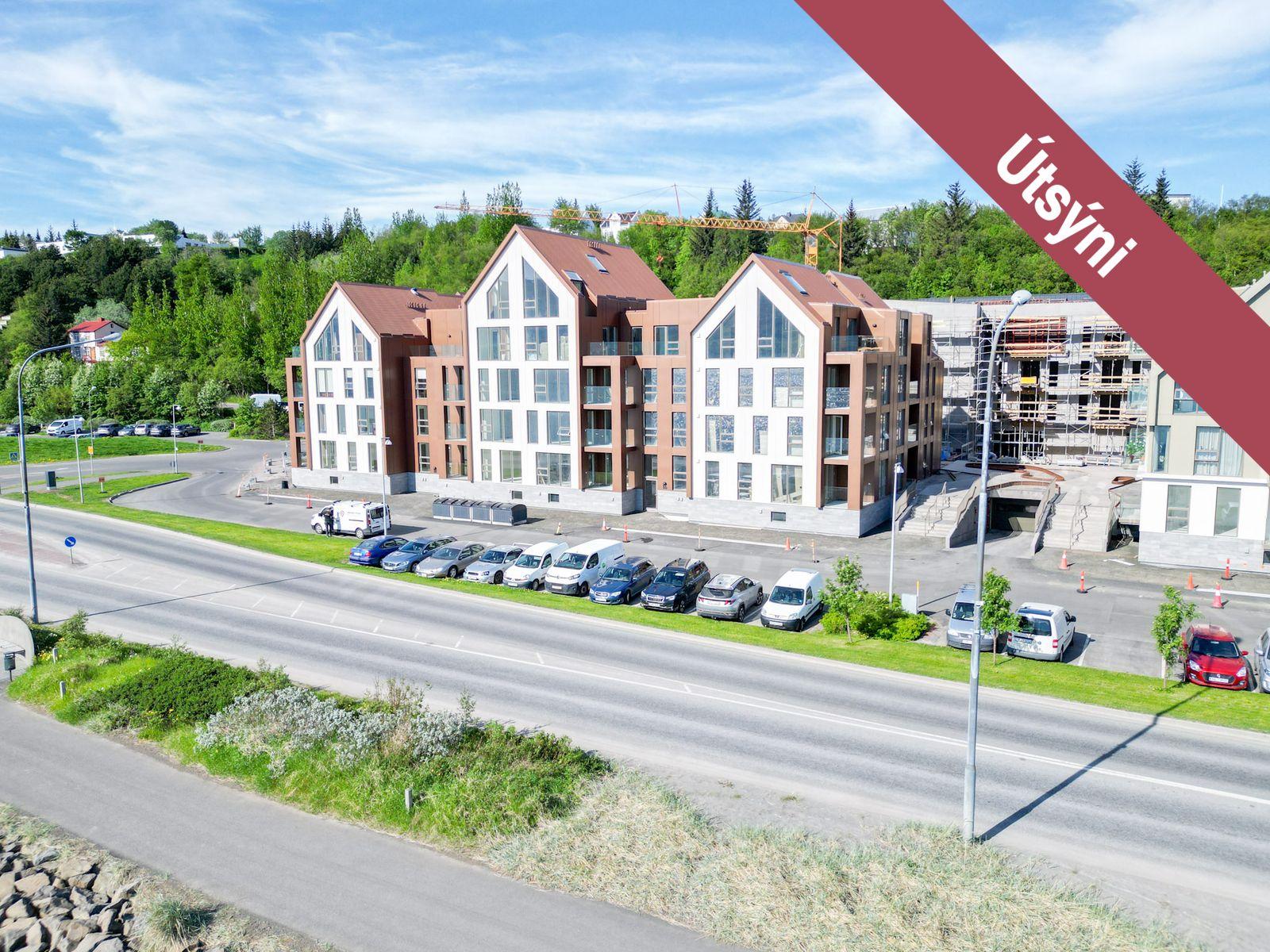 Stæði í lokaðri bílageymslu fylgir íbúðinniAllar innréttingar, innihurðir, skápar og Electrolux eldhústæki eru frá Parka. Blöndunar- og hreinlætistæki eru frá Tengi.