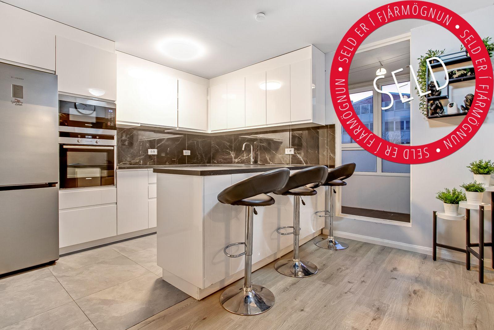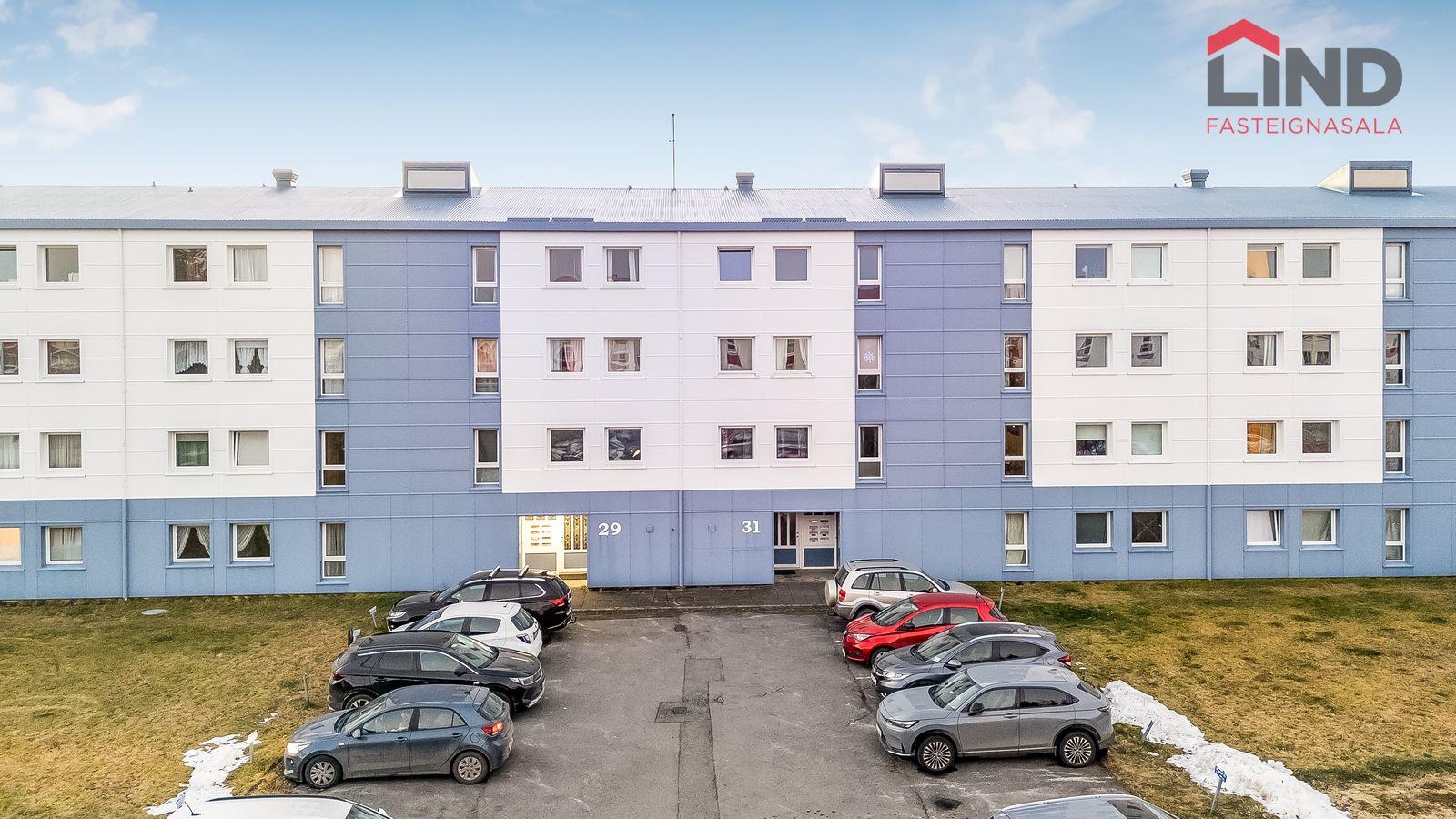 Um er að ræða rúmgóða fjögurra herbergja íbúð á annarri hæð í sjö íbúða stigagangi. Eignin samanstendur af þremur svefnherbergjum, baðherbergi með baðkari, eldhúsi, þvottahúsi innan íbúðar, stofu/borðstofu, skrifstofuherbergi á yfirbyggðum svölum og geymslu í kjallara. Sérmerkt bílastæði fylgir með íbúðinni.