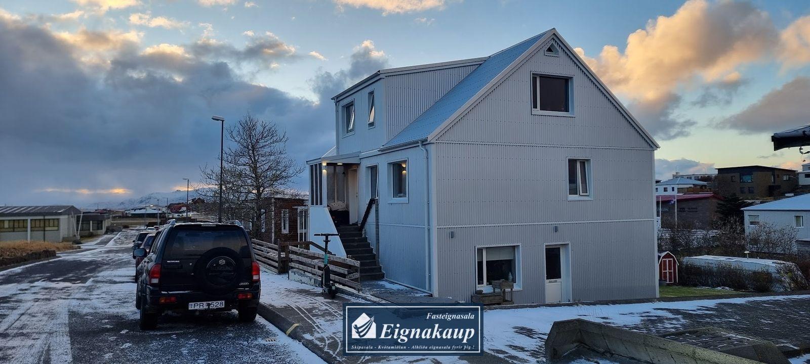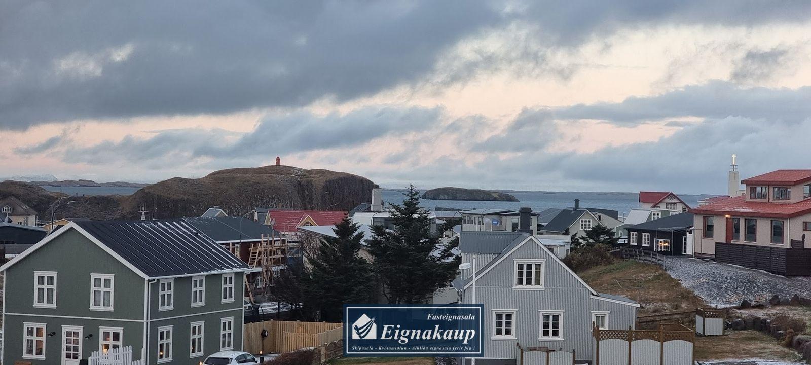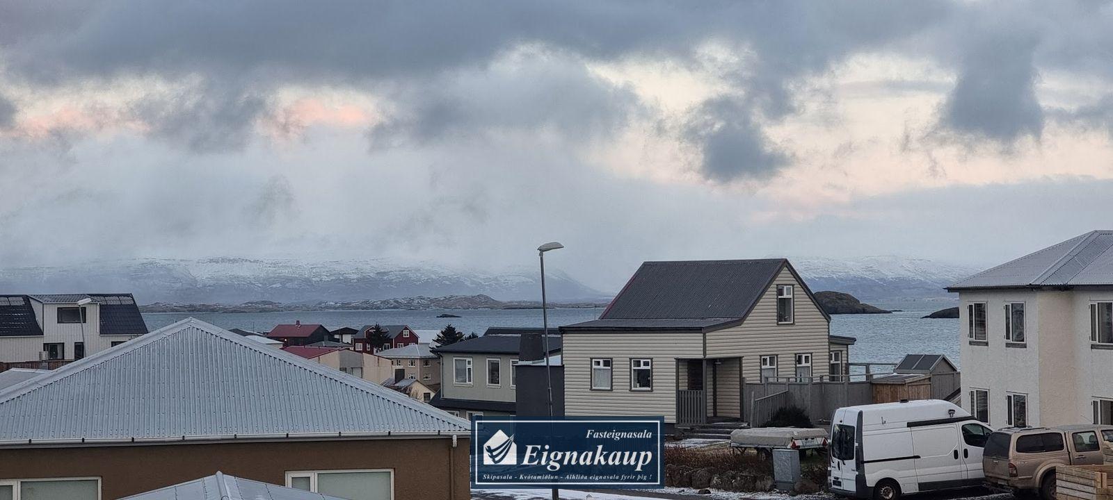 Eignakaup fasteignasala & JJ Lögmenn ehf kynna í einkasölu 152,0m2 efrihæð í tvíbýlishúsi Stykkishólmi með mjög tilkomumiklu útsýni yfir Breiðafjarðareyjar og til fjalla. Íbúðin er miðsvæðis í Stykkishólmi, afar vel staðsett þar sem örstutt er í verslun og alla þjónustu. Tilhögun íbúðarinnar er sem hér segir. MIÐHÆÐ//FORSTOFA með flísum á gólfi //HOL með parketi, hurð inná gestasalerni/þvottahús//STOFUR eru tvær og með parketi á gólfum og gengið er út á nýjar svalir úr innri stofu// Svefnherbergisgangur með parketi á gólfi, fatahengi og geymsluskáp/búr//SVEFNHERBERGI með parketi á gólfi og eldri innbyggðum skáp//ELDHÚS með ágætri innréttingu og borðkrók, parketflísar á gólfi. EFRI HÆÐ//STIGI steyptur uppá efri hæð//OPIÐ rými er bíður uppá ýmsa möguleika, parket á gólfi//TVENN SVEFNHERBERGI eru á efri hæð, eru skápar undir súð i öðru þeirra//Gríðarlega fallegt útsýni er af efri hæð til allra átta yfir Stykkishólm, Breiðarfjarðareyjar og til fjalla.//HÁALOFT með lúgu.