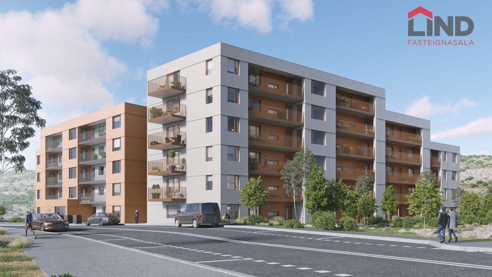 Íbúð 306: Er 101,4 fermetra 4ja herbergja íbúð á þriðju hæð með góðum 7,6 fermetra svölum og sérmerktu bílastæði í lokuðum bílakjallara. Þar af er geymsla 11,1 fermetrar. Afhending er áætluð í mars/apríl 2026 en þó með fyrirvara um að öryggisúttekt sé komin á húsið.