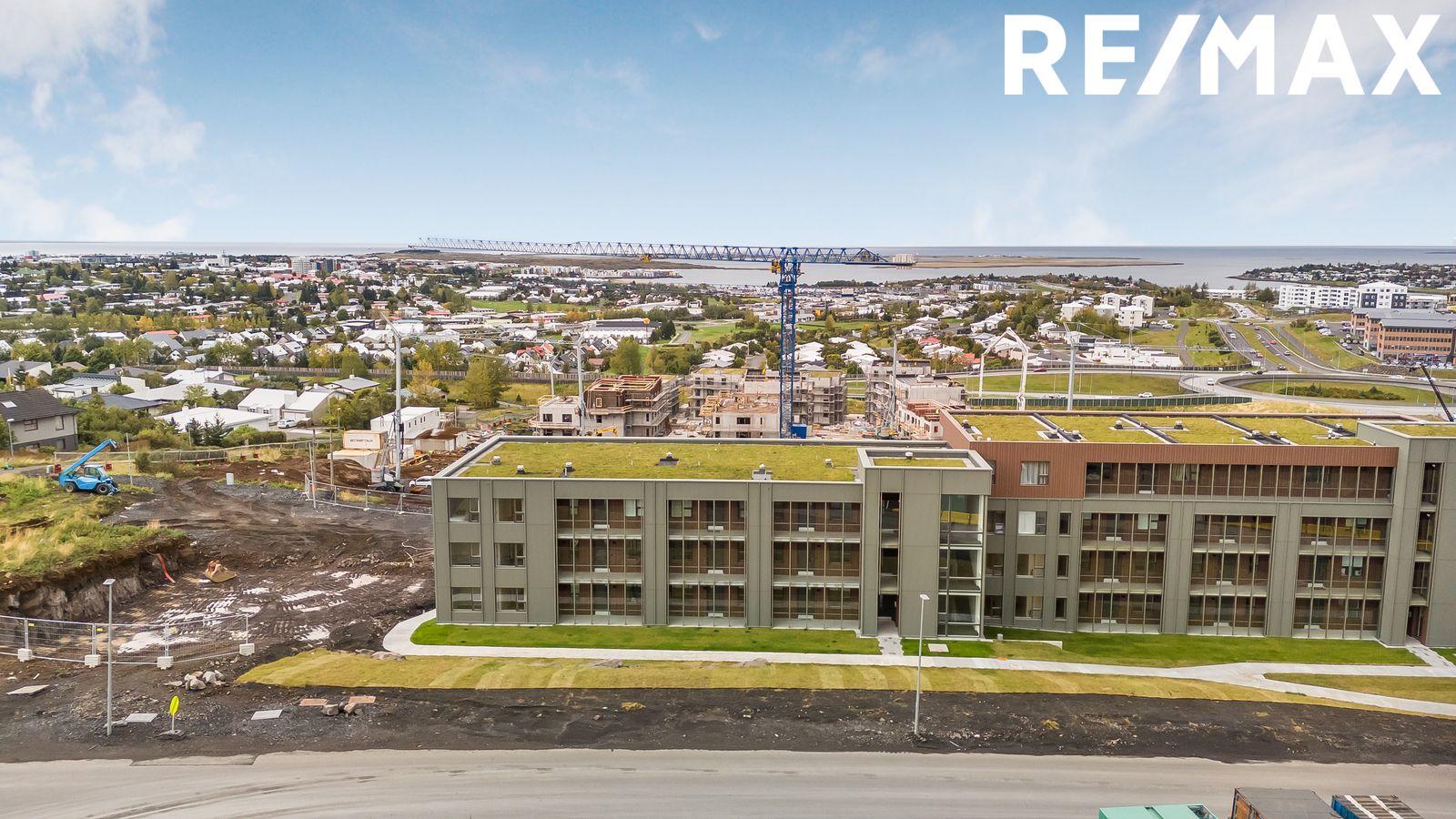 Húsið:Arkitektar og aðalhönnuðir hússins eru Sen&Son arkitektar ehf. Húsið er steinsteypt þriggja hæða fjölbýlishús með 7 íbúðum í einum stigagangi með lyftu. Á 1. hæð er anddyri, geymslur íbúða, tæknirými og tveir innbyggðir bílskúrar. Á 1. hæð eru einnig tvær glæsilegar íbúðir með beinu aðgengi út í garð. Á 2. hæð hússins eru þrjár virkilega flottar íbúðir og á 3. hæð hússins eru svo tvær stórglæsilegar íbúðir, en með þeim fylgja bílskúrarnir. Á lóðinni er bílageymsla með 7 bílastæðum. Bílageymslan er opin að hluta með lokuðum hliðum og upphituðu gólfi. Gert er ráð fyrir lagnaleið að hverju stæði fyrir möguleika á rafhleðslustöð.