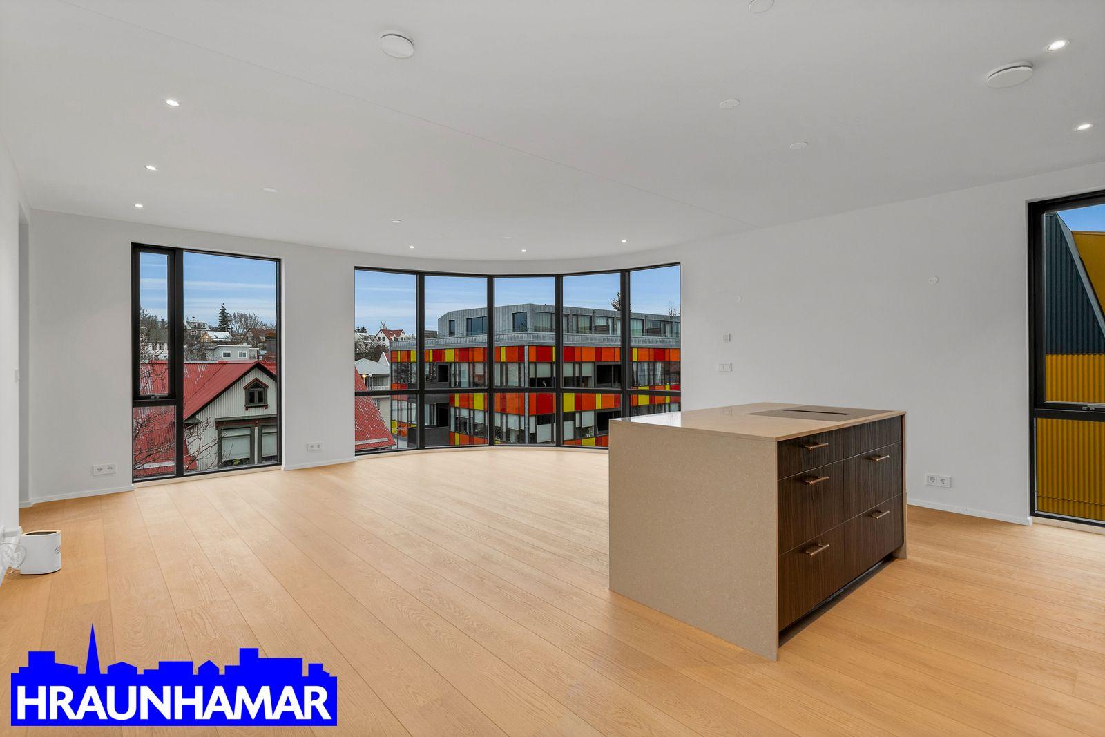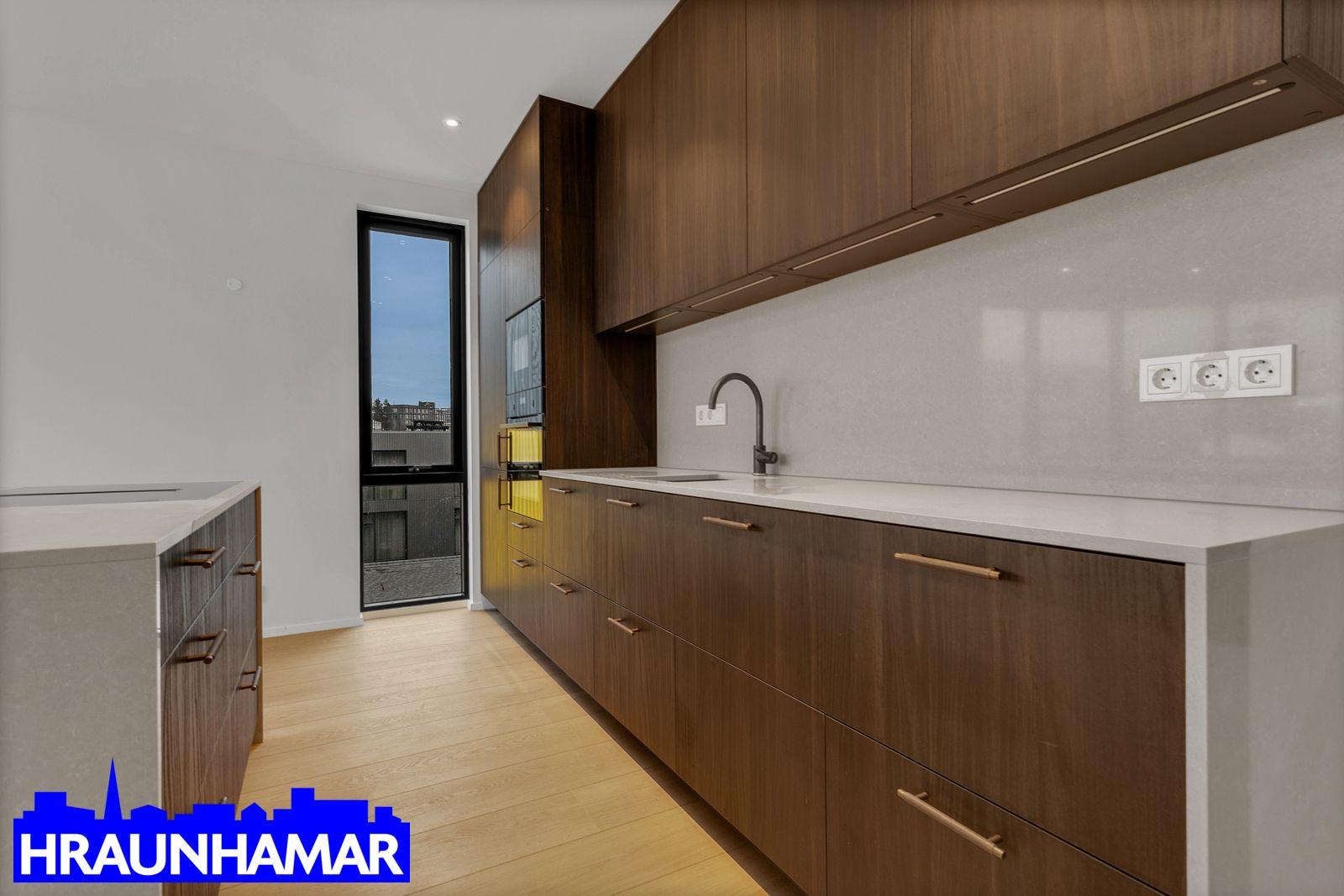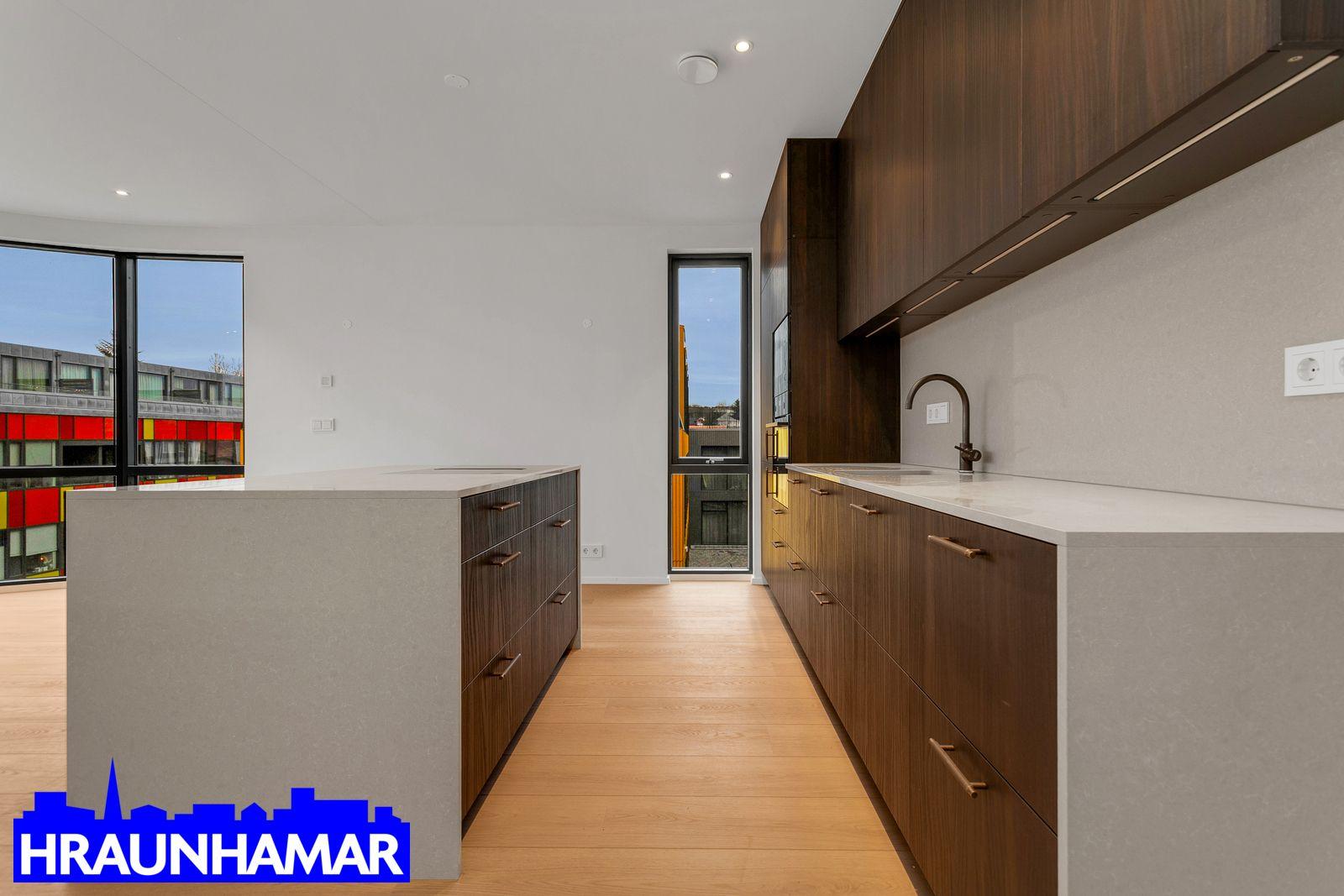 Íbúðirnar eru sérlega vel innréttaðar með innréttingum frá Voke III og vönduðum eldunartækjum. Vínyl parket frá Parka á alrými, herbergjum og flísar í votrýmum. Gólfhiti.