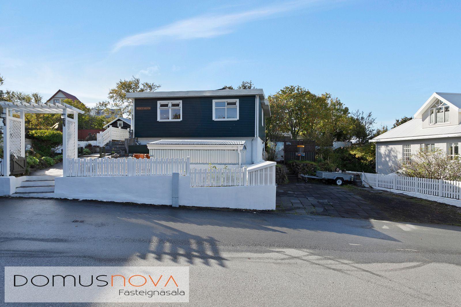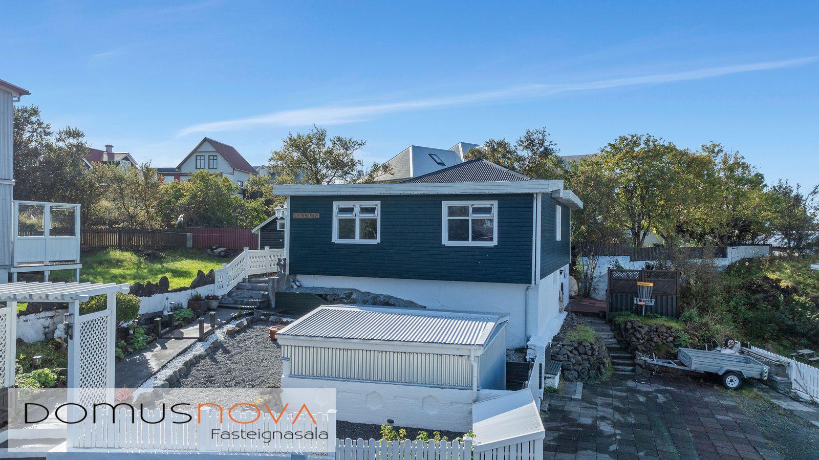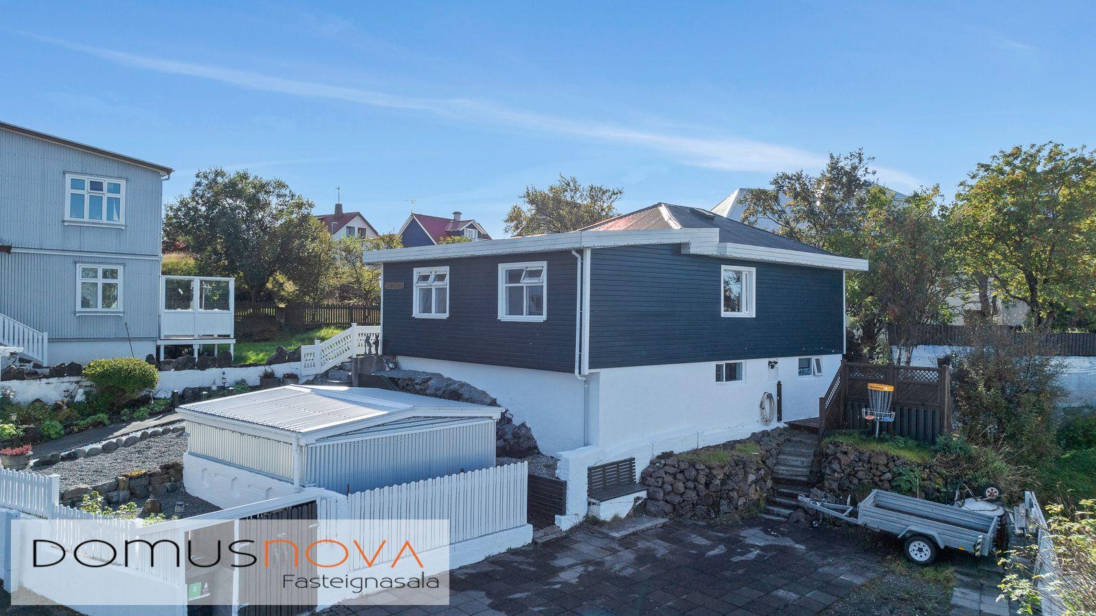 Lóð og pallar: Frá anddyri efri hæðar er farið út í garð þar sem eru góðir sólpallar með skjólveggjum sem afmarka lóð nærliggjandi húsa. Góður geymsluskúr c.a 7 fm er á lóð í suður einngi eru minni geymsluskúrar fyrri grill og annan búnað. Hægt er að fara af palli efri hæðar niður tröppur að eintsklingsíbúð neðri hæðar, einnig er aðgengi að henni frá lóð að framan þar sem er innkeyrsla við hlið geymsluskúrs.