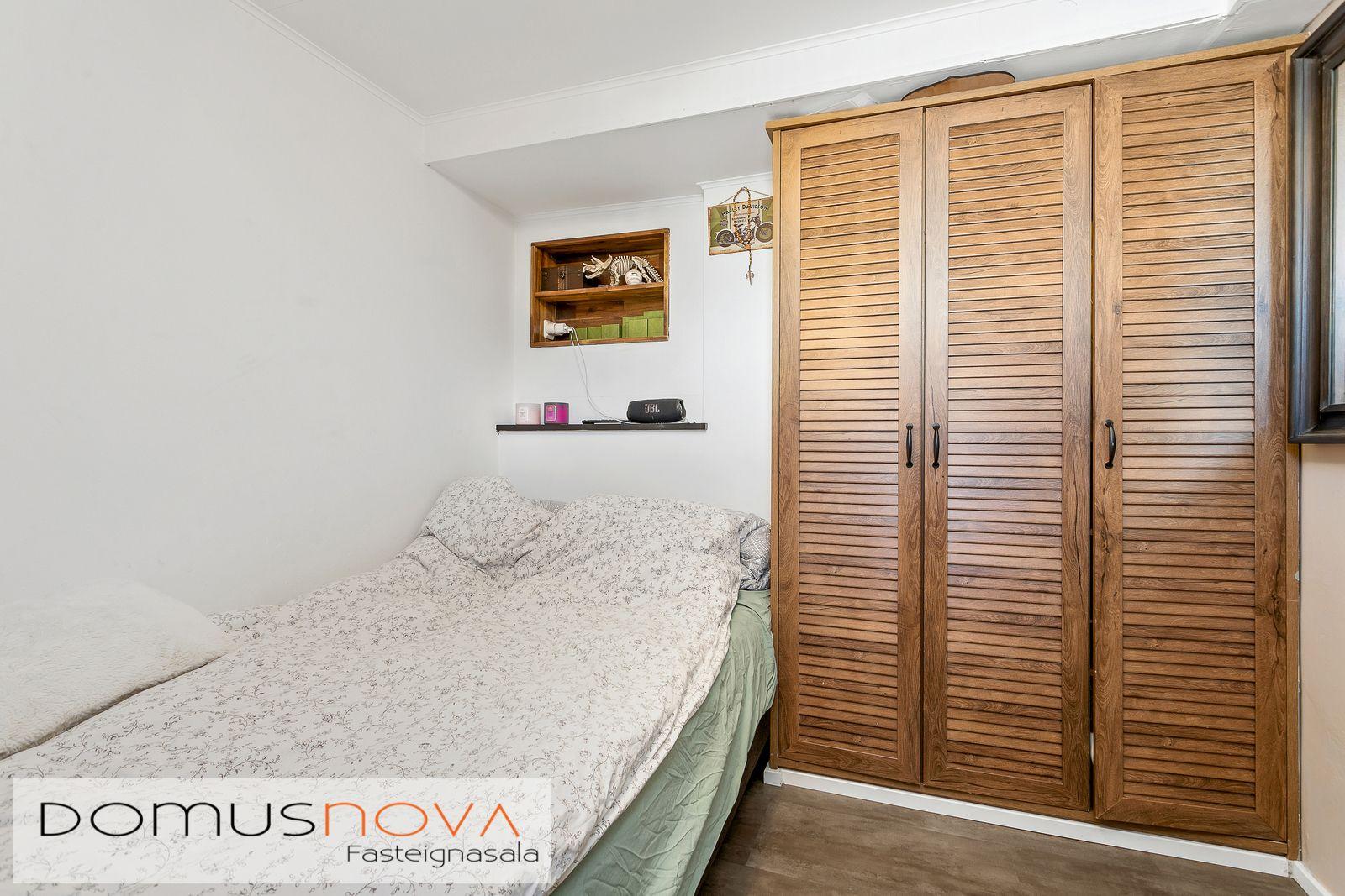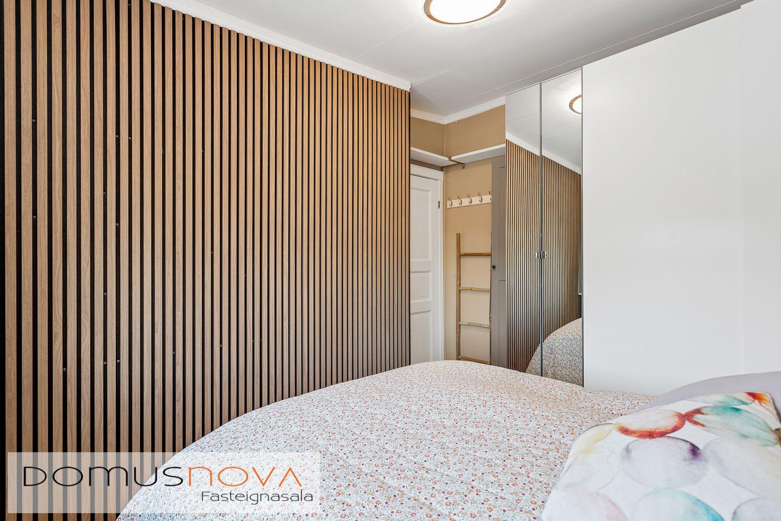 Hjónaherbergi – Fataskápur og parket á gólfi.