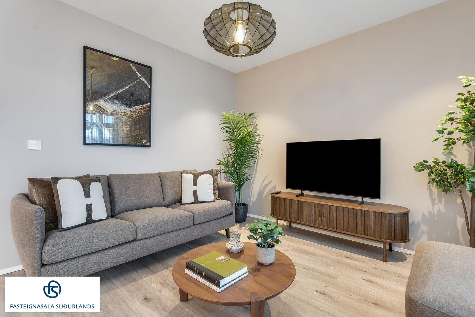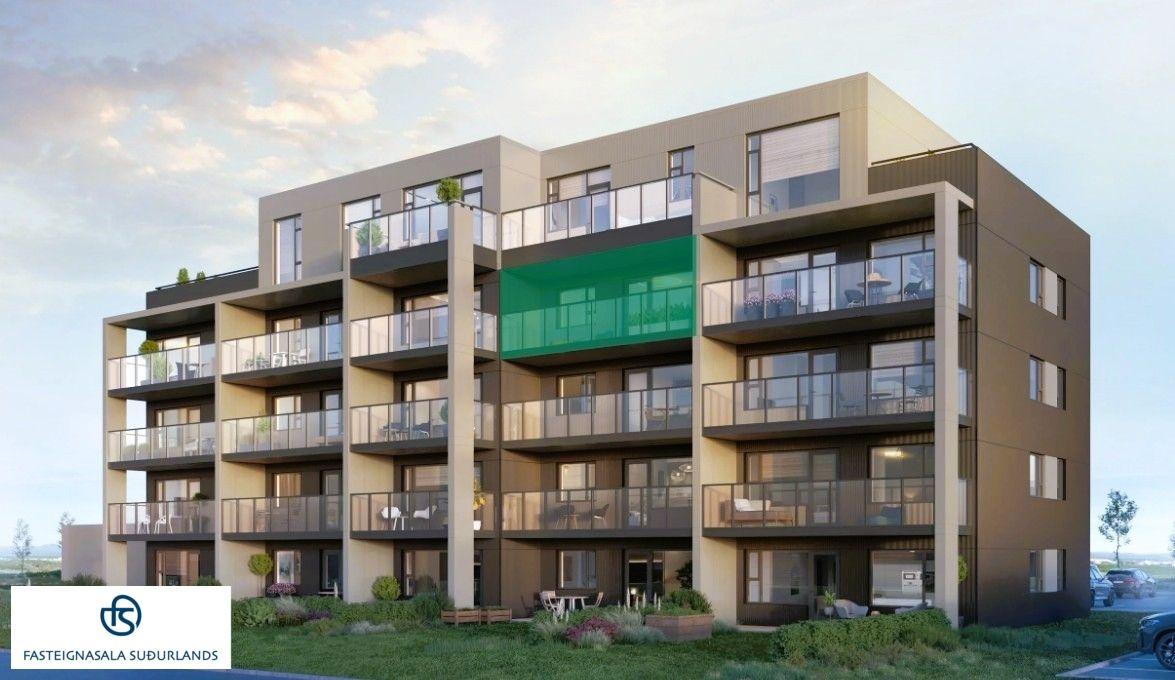Fasteignasala Suðurlands (s 483 3424) kynnir: Hnjúkamói 16, íbúð 0402. Ný, falleg og björt 67m2 íbúð á 4. hæð með glæsilegu útsýni, auk 5,3m2 sér geymslu. Íbúðin er með 2 stórum svefnherbergjum. Úr alrými er utangengt á timburklæddar svalir sem snúa í hásuður.