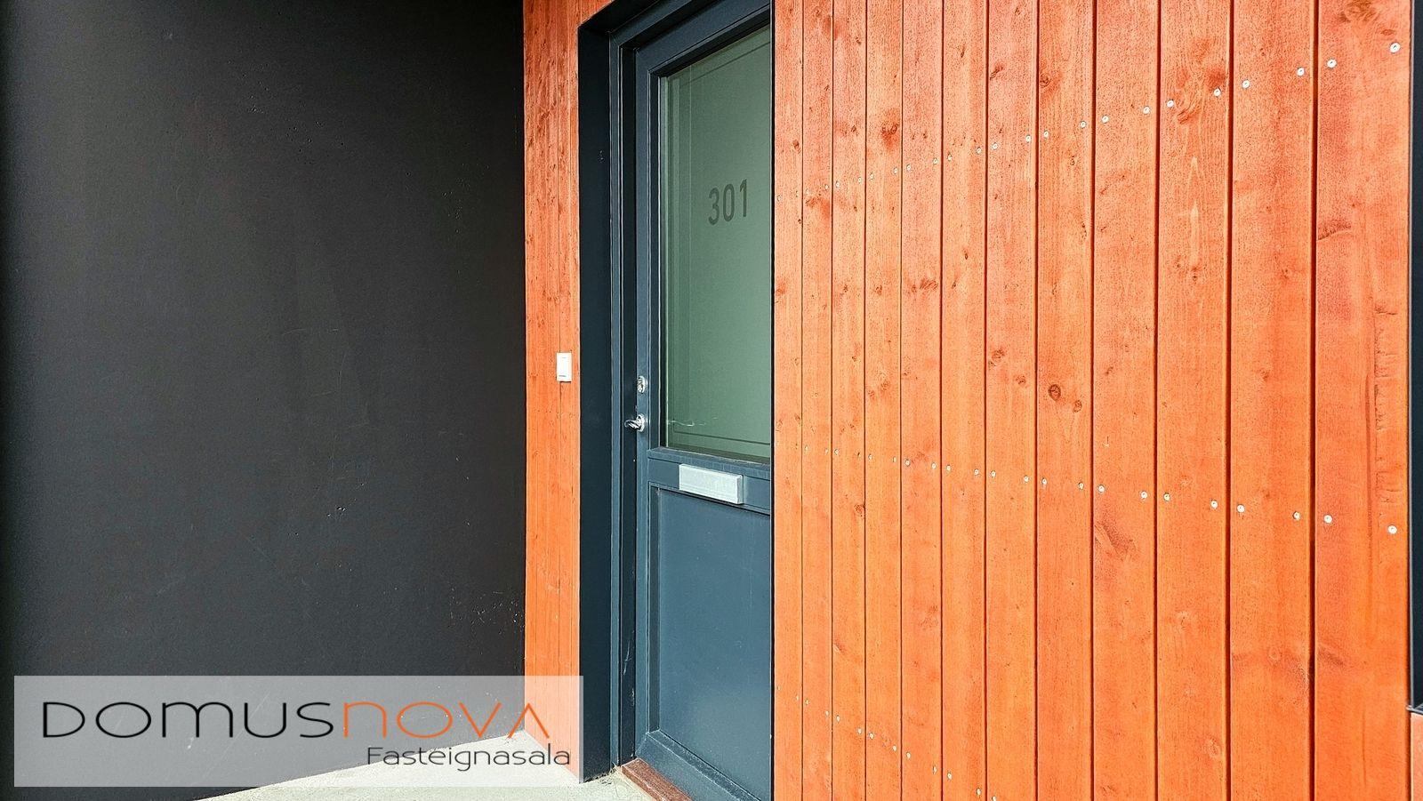 Íbúð 301 er skráð 71.7 fm., þar af geymsla 4,6 fm. Sérinngangur er inn í eignina og merkt bílastæði í bílakjallara. Innan eignar er anddyri, stofa, eldhús, tvö svefnherbergi og baðherbergi þar sem einnig er þvottarými. Svalir eru 9,6 fm. og snúa í suð-vesturátt.