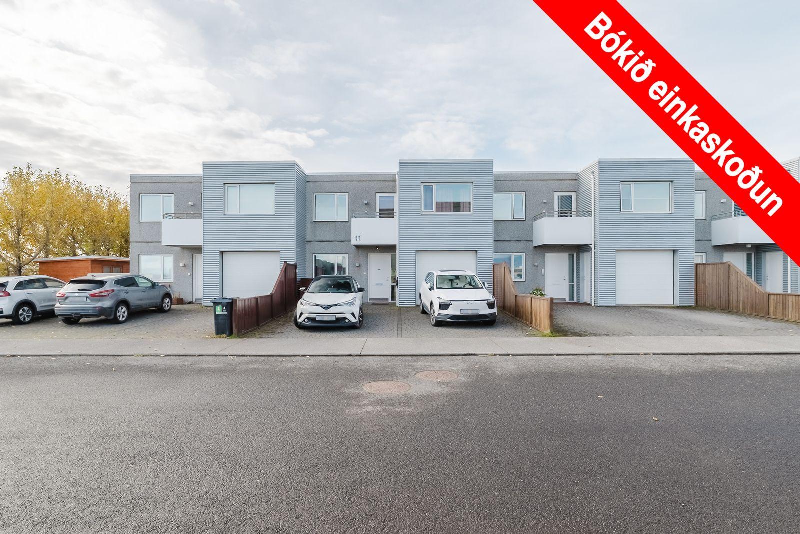 Atli á Lind fasteignasölu kynnir í einkasölu þetta fallega og bjarta 180,9 fm raðhús á tveimur hæðum með bílskúr. Í húsinu er virkilega fallegt útsýni af tvennum svölum sem snúa annars vegar í suður og hinsvegar í norður. Stór afgirtur garður með timburverönd sem snýr í suður ásamt notalegum sólskála með hita í gólfi. Bílskúr með hleðslustöð fyrir rafbíl.
