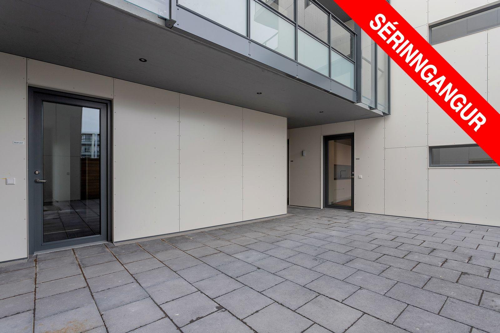 Sameiginlegt bílastæðahús er fyrir heildar húsið.
