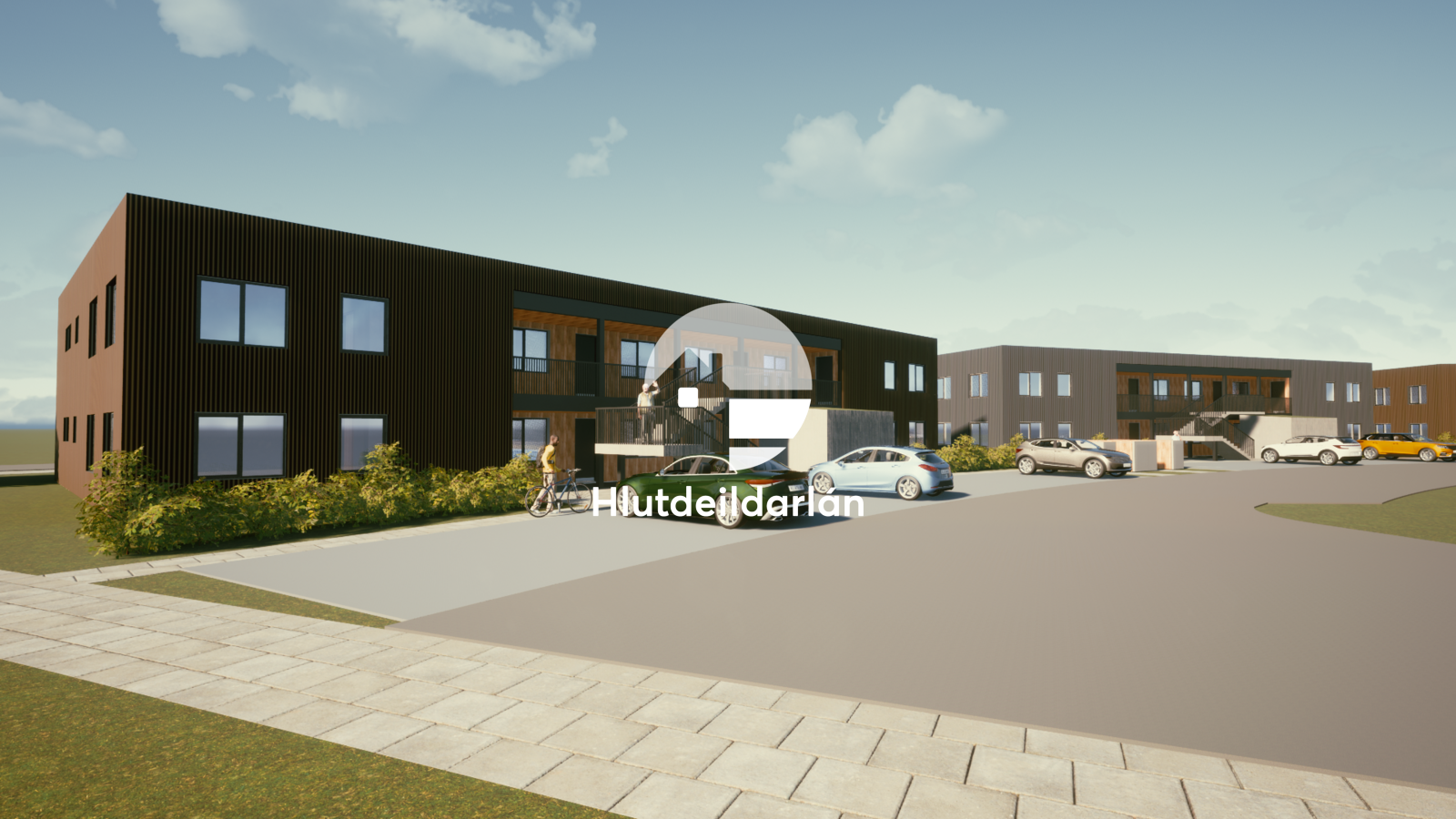 Bílastæði eru úr Ecoraster jarðvegsgrindum. Hellulagt verður framan við innganginn í húsið. Lóð að öðruleiti með grasi. Lagt verður fyrir hleðslustöðvum við bílastæðin.