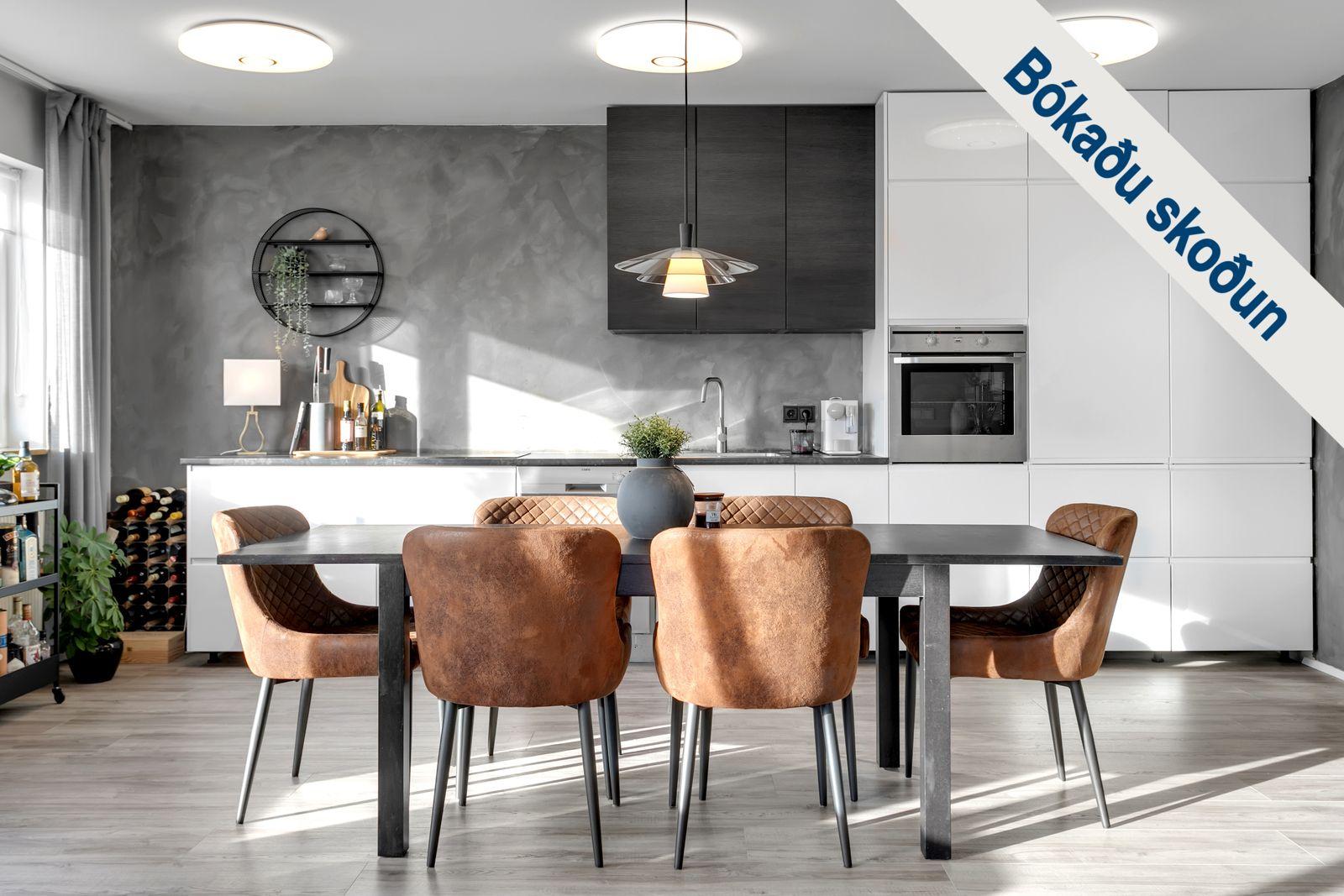 Nánari lýsing: Komið er inn í forstofu með parket á gólfi og fataskápum. Eldhús, borðstofa og stofa eru í einu opnu og björtu rými og þar er gengið út á verönd. Eldhús er með fallegri innréttingu, ofni í vinnuhæð og helluborði. Parket á gólfum. Herbergi I er parketlagt með mjög góðu skápaplássi. Herbergi II er með fataskáp og gólf er parketlagt. Geymsla með glugga/Herbergi 3. Baðherbergi er með góðu skápaplássi, stór sturta, upphengt salerni, handklæðaofn og flísar á gólfi. Þvottahús er innan íbúðar. Þar eru skolvaskur, hillur og flísar á gólfi. Íbúðin var öll tekin í gegn árið 2020 utan baðherbergi. Sameign hússins er snyrtileg. Lyfta er í húsinu og í kjallara er sameiginleg hjóla- og vagnageymsla. Vel staðsett og sérmerkt bílastæði í lokuðum bílakjallara. Í bílakjallara er einnig sameiginleg bílaþvottaaðstaða.