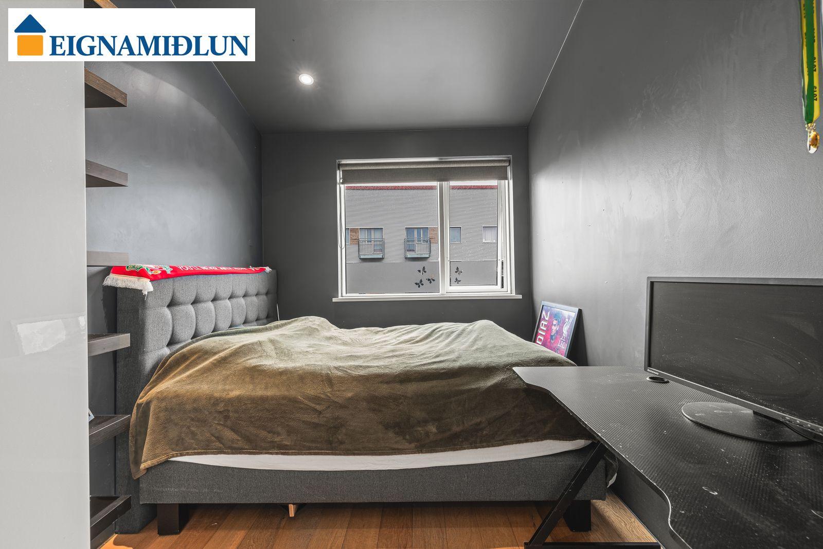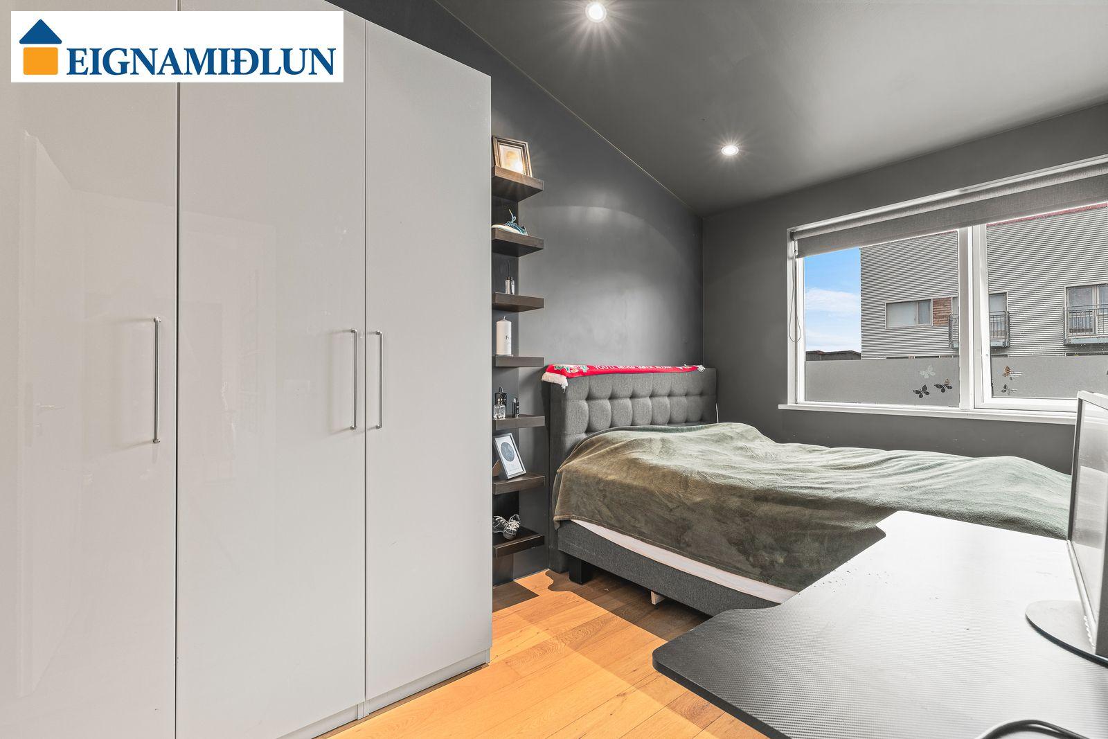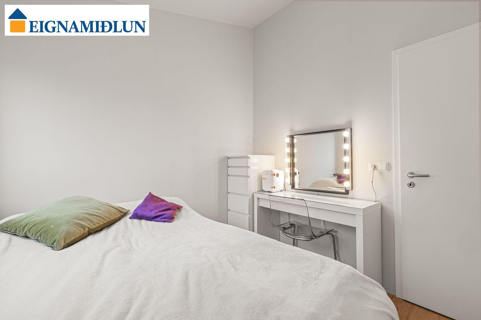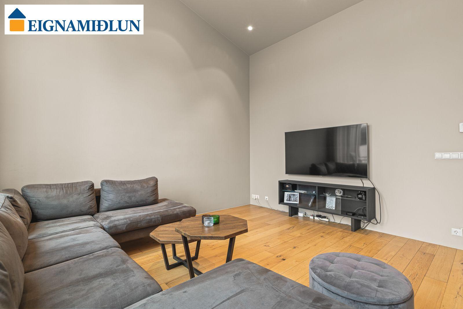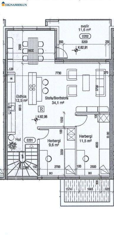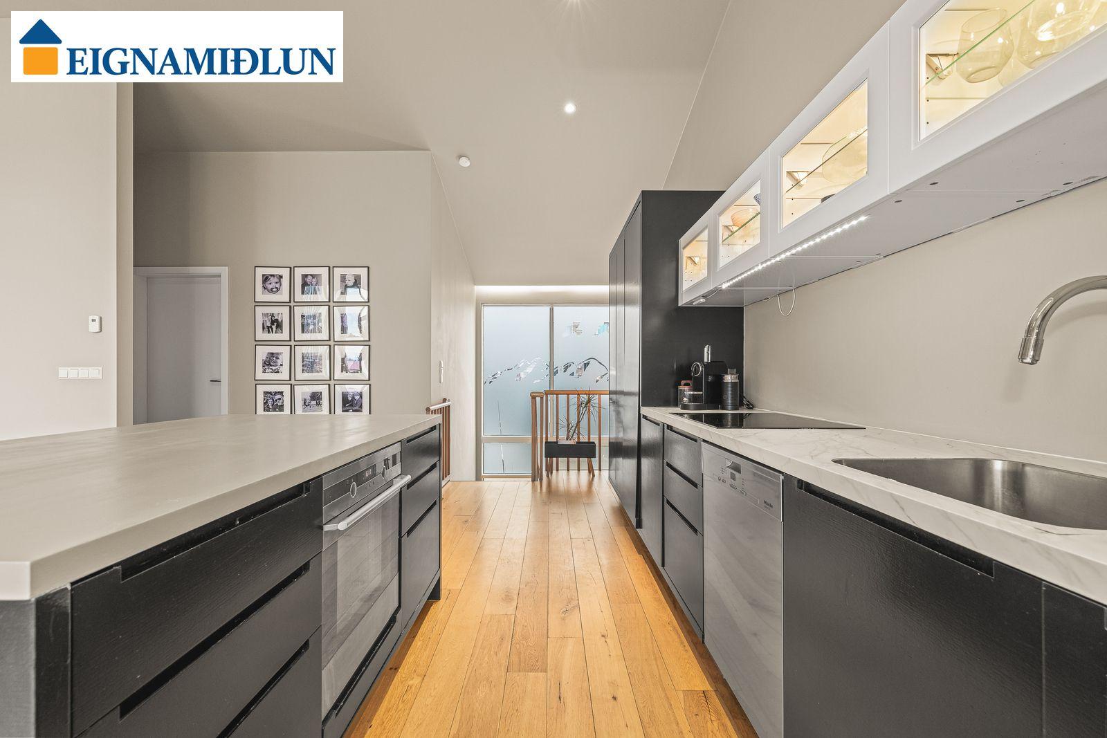 ALRÝMI: ELDHÚS: Opið eldhús með sprautulakkaðri innréttingu, eldaeyja. BORÐSTOFA: Við útsýnisglugga, gengið út á stórar svalir í suðvestur. STOFA: Rúmgóð parketlögð stofa. Hátt er til lofts í alrýminu.