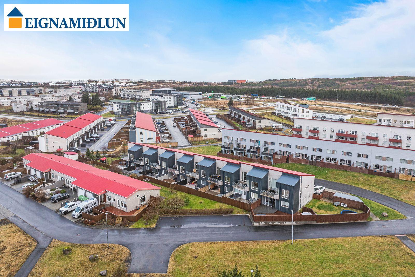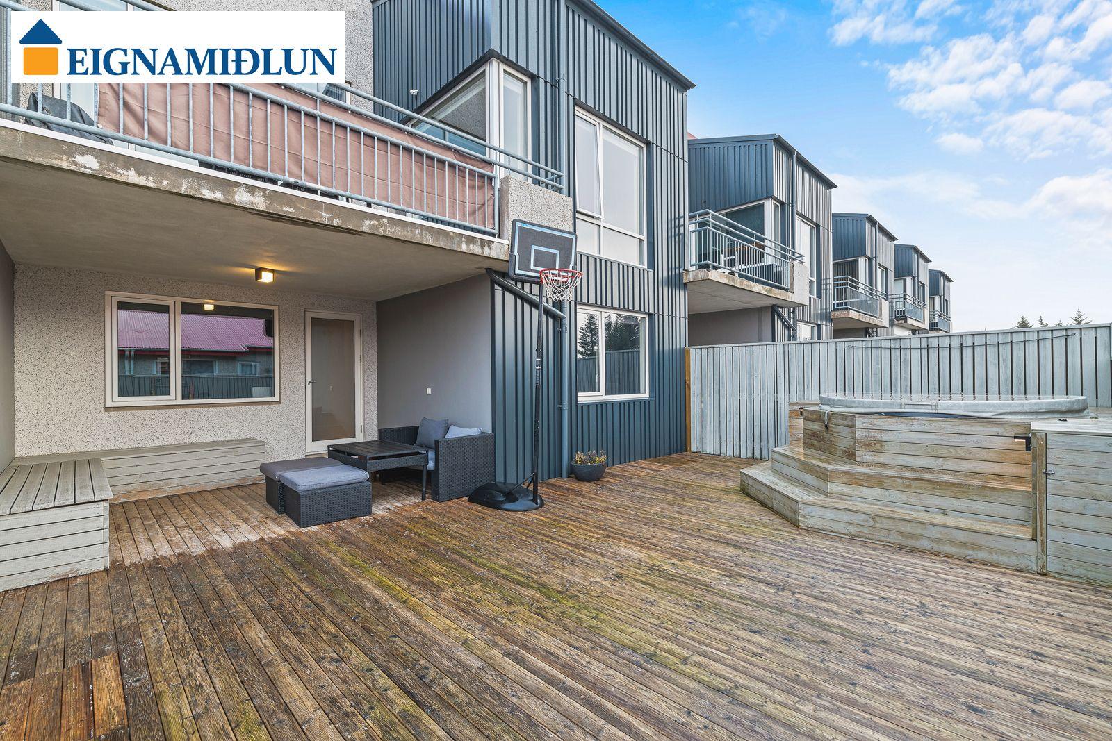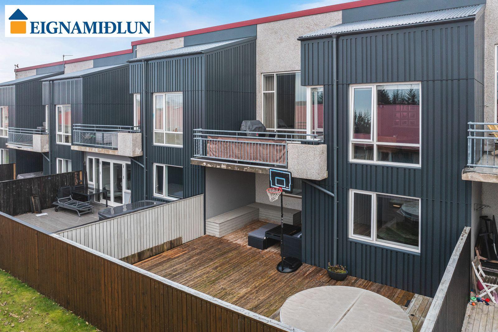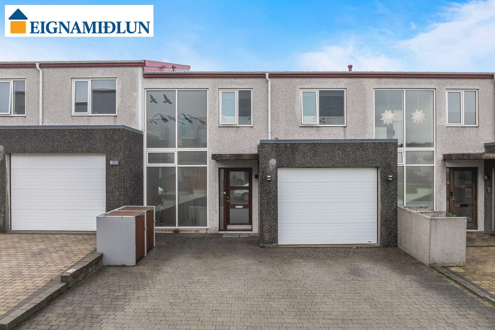Hólmvað 46, 172.4 fm fallegt velskipulagt raðhús á 2 hæðum með innbyggðum bílskúr. Mjög góð lofthæð á efri hæð. 4 svefnherbergi, stofa og borðstofa, vandað flísalagt baðherbergi. Stórar svalir af efri hæð og stór afgirt timburverönd á neðri hæð með hitaveitupotti. Hellulagt bílaplan með hitalögn. Gott útsýni. Bókið skoðun : Þórarinn sími