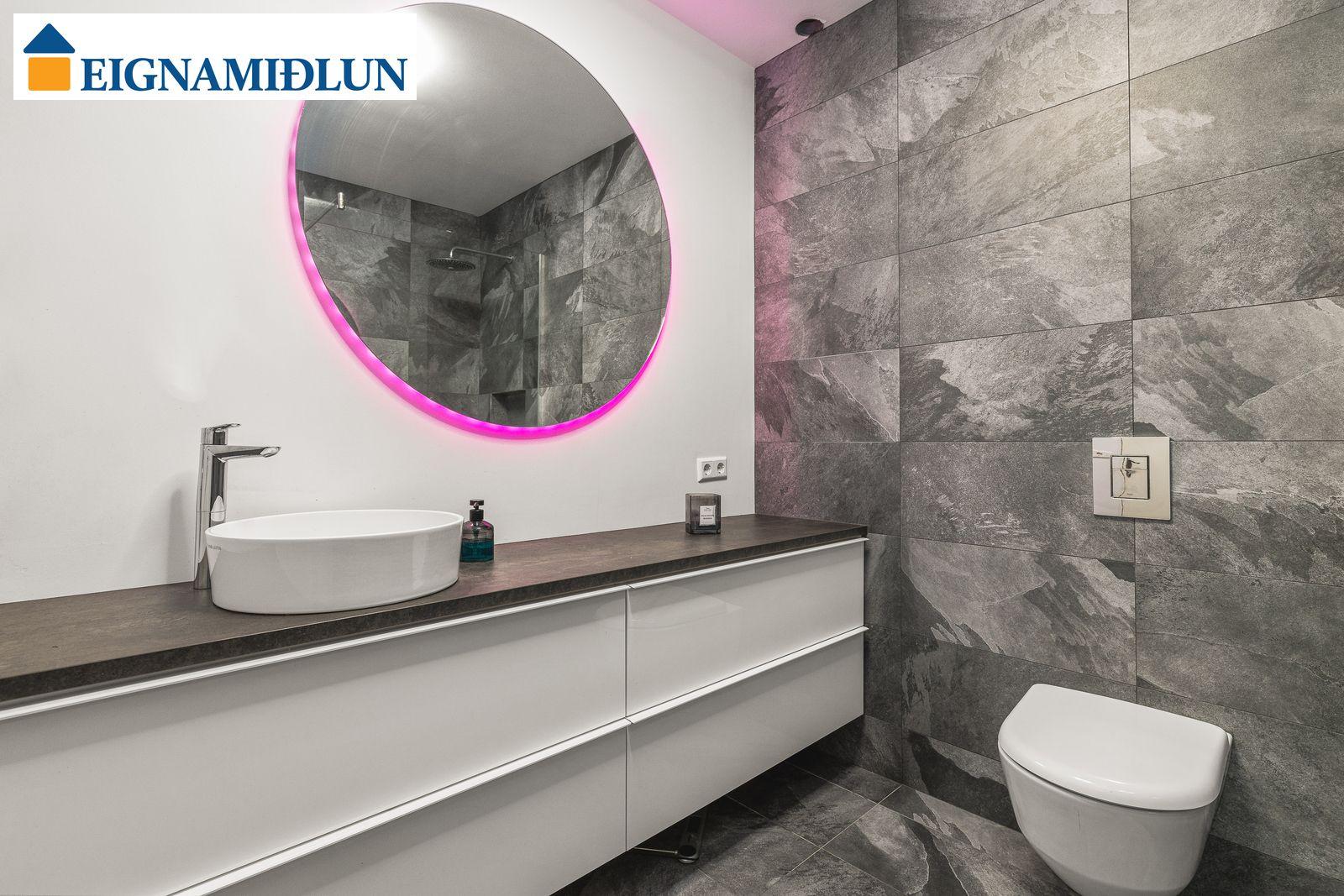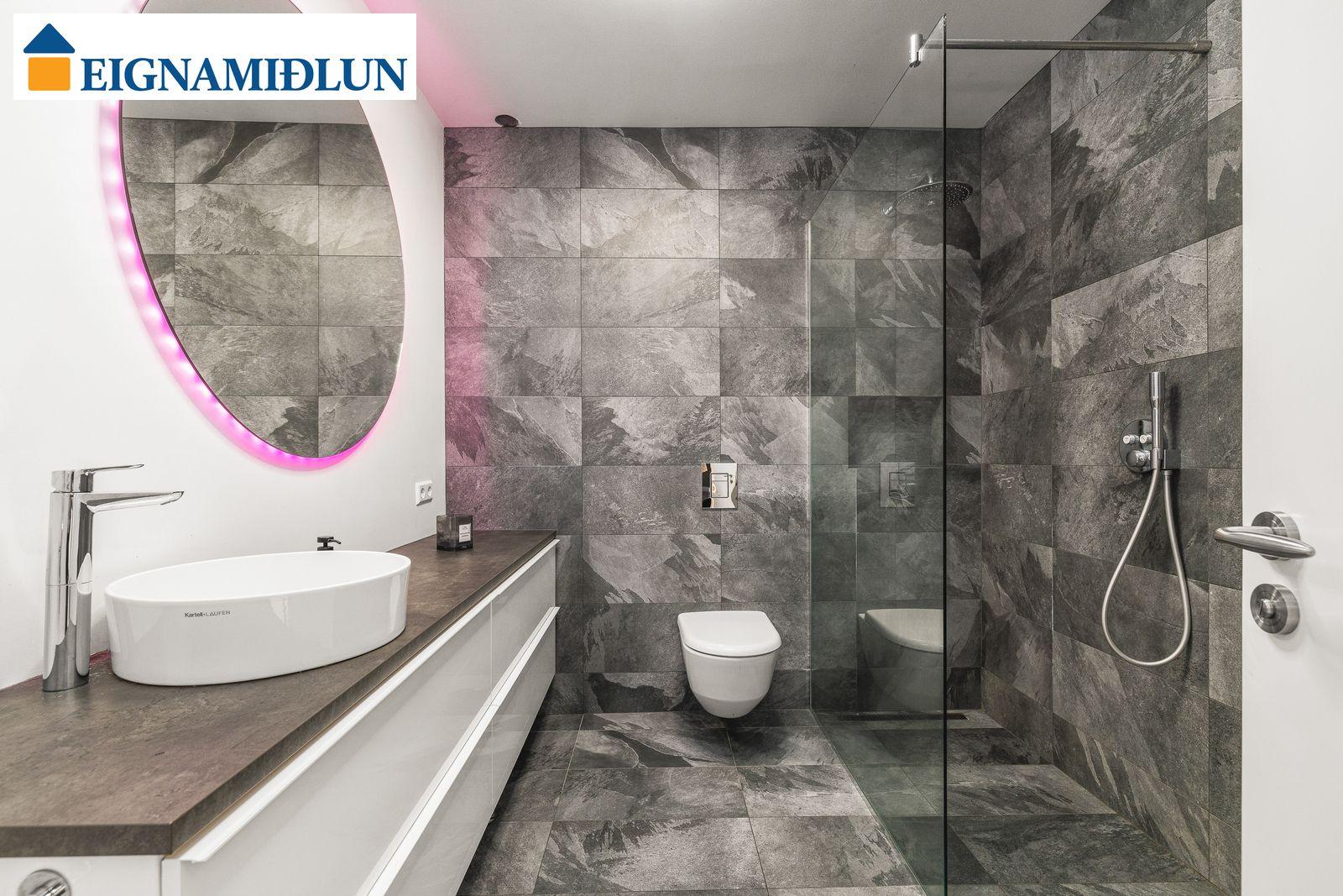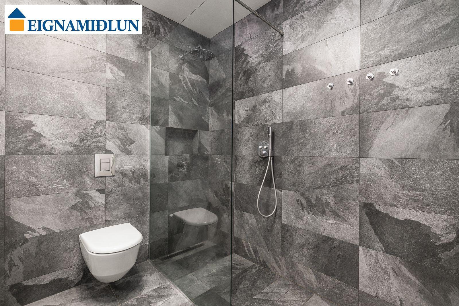 BAÐHERBERGI: Vandað endurnýjað flísalagt baðherbergi með góðri innréttingu, vegghengdu salerni og "walk in"sturtu.