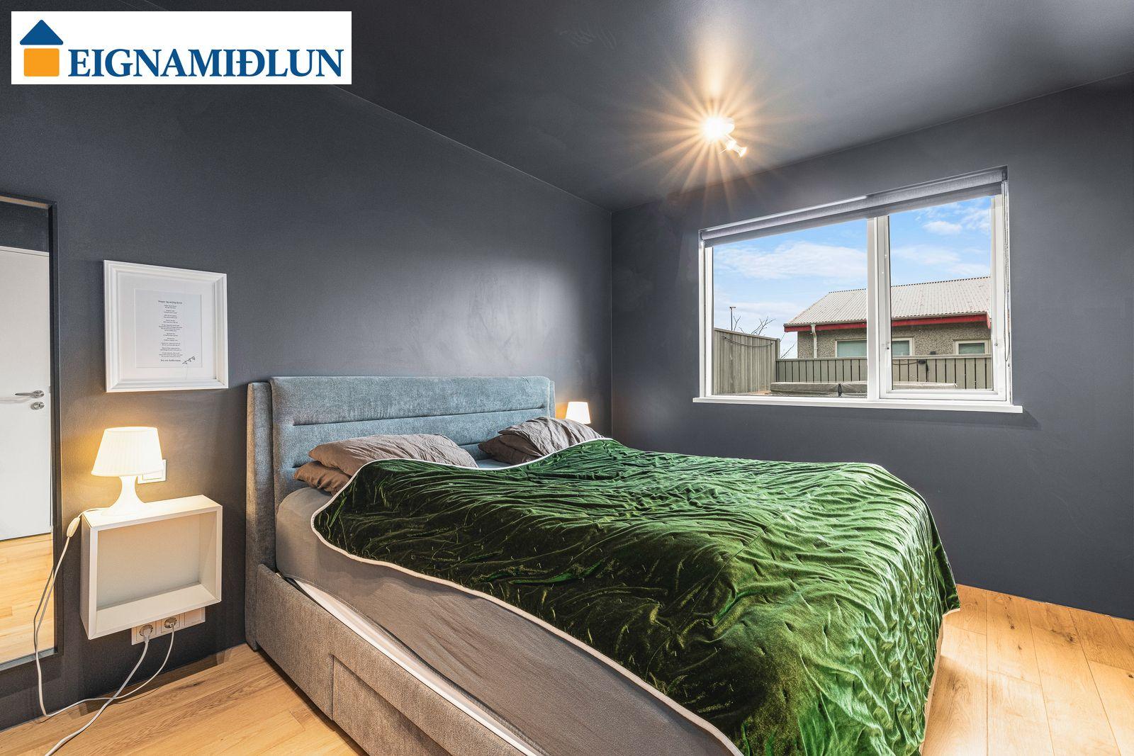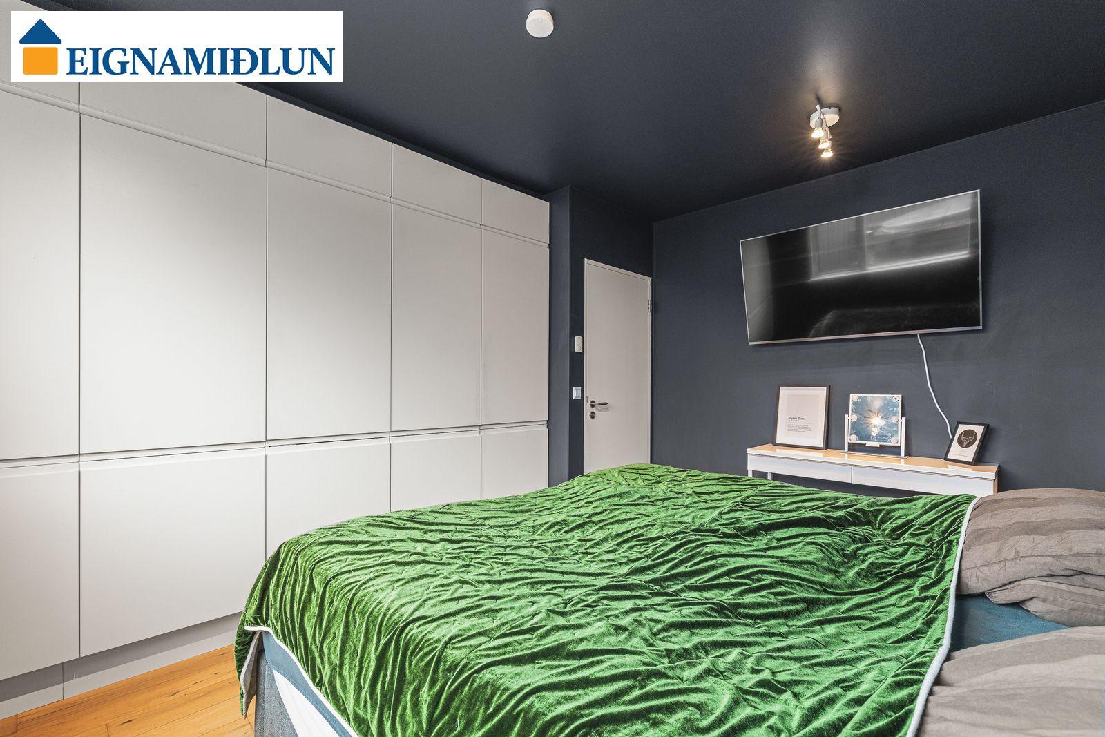 HERBERGI I: Rúmgott hjónaherbergi parketlagt og með góðum skápum.