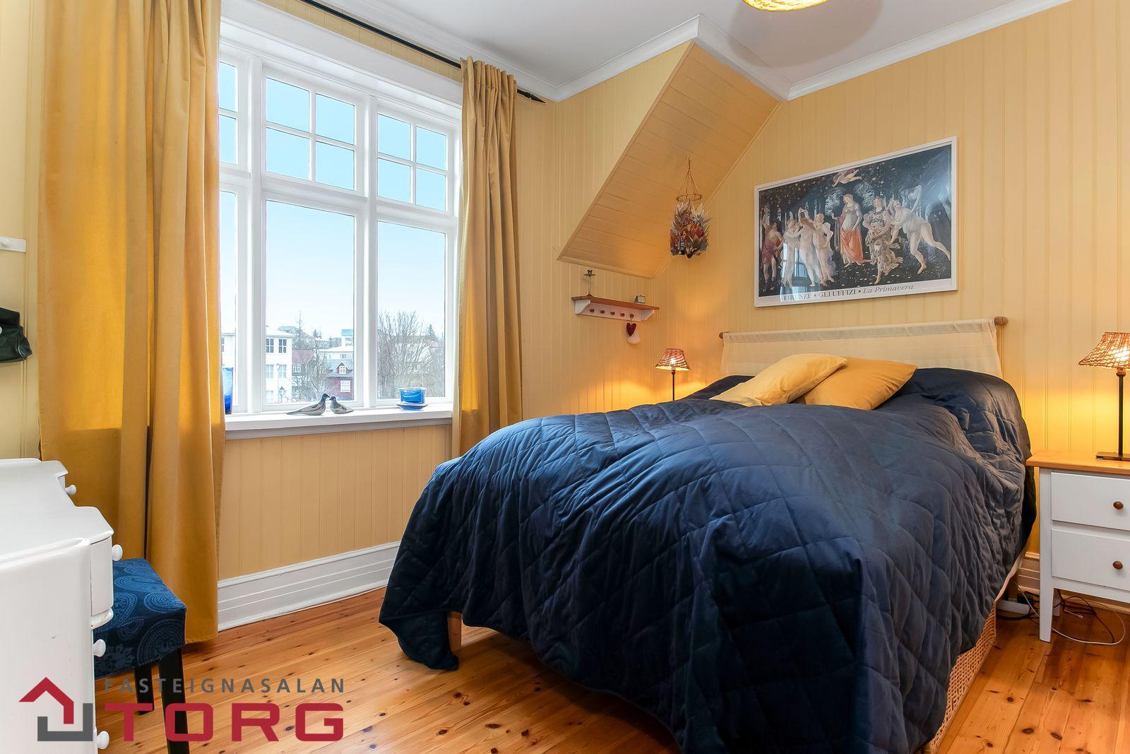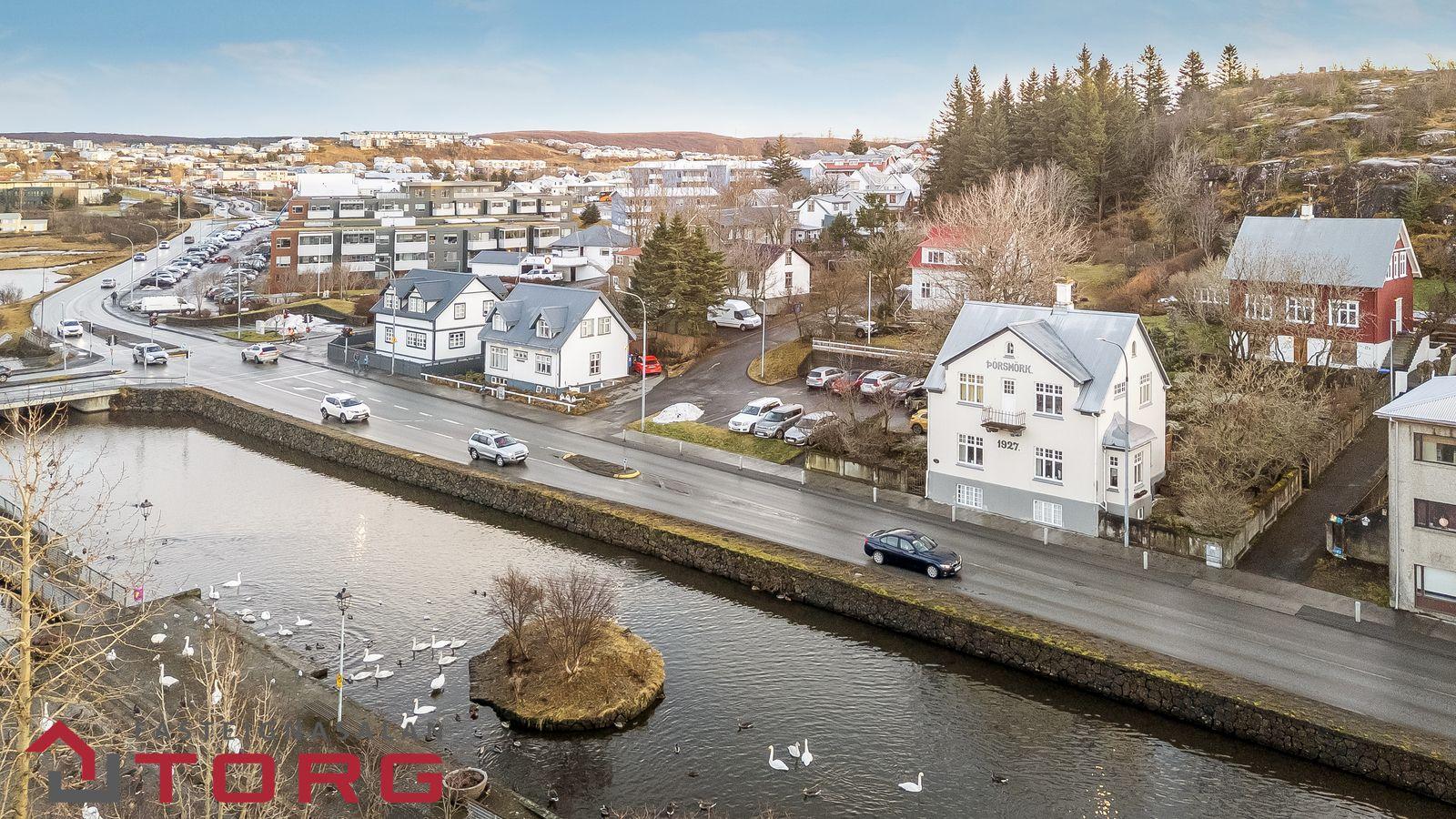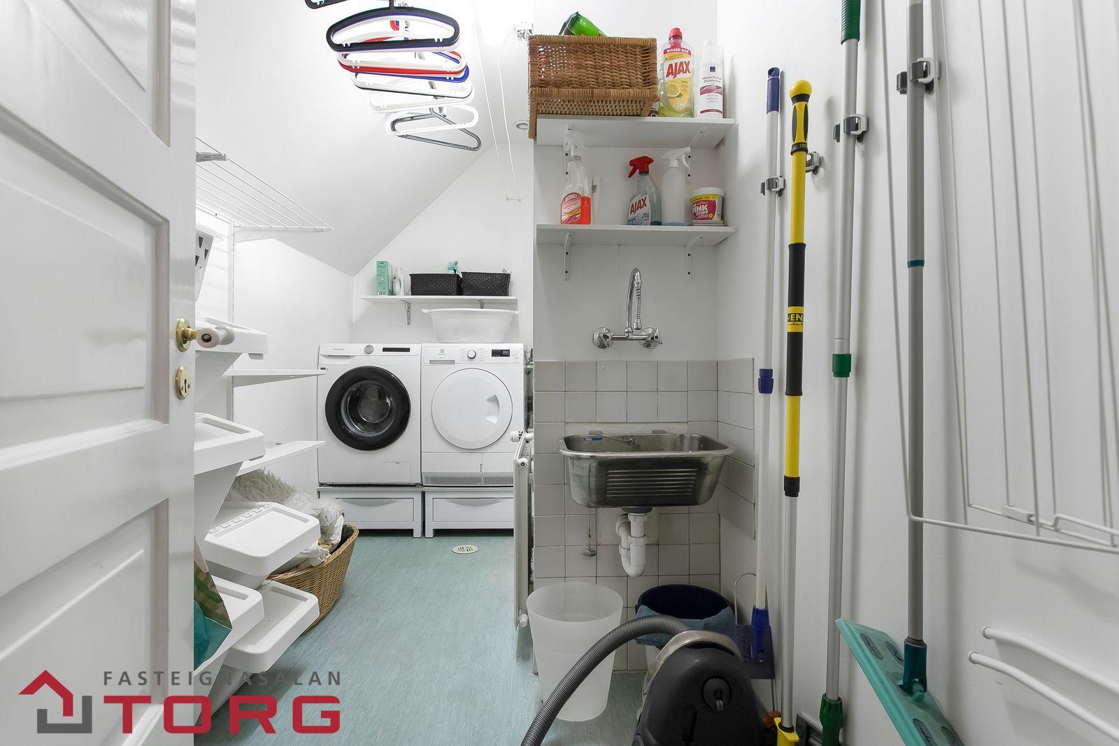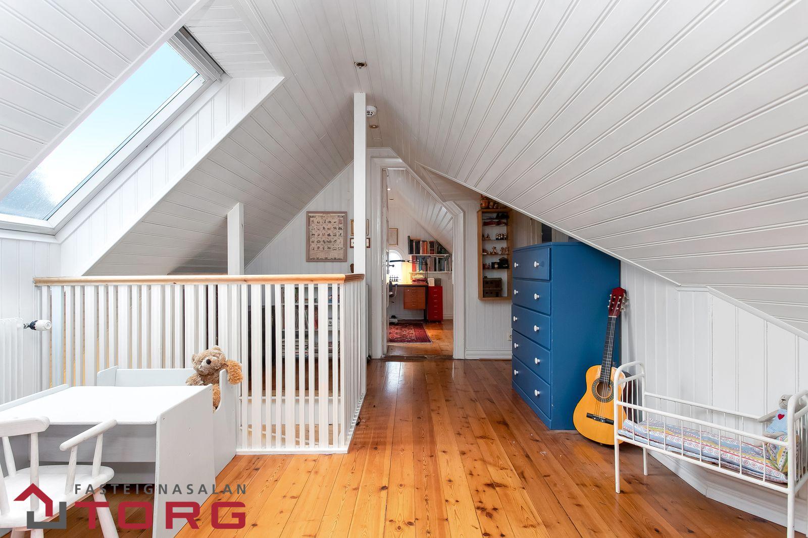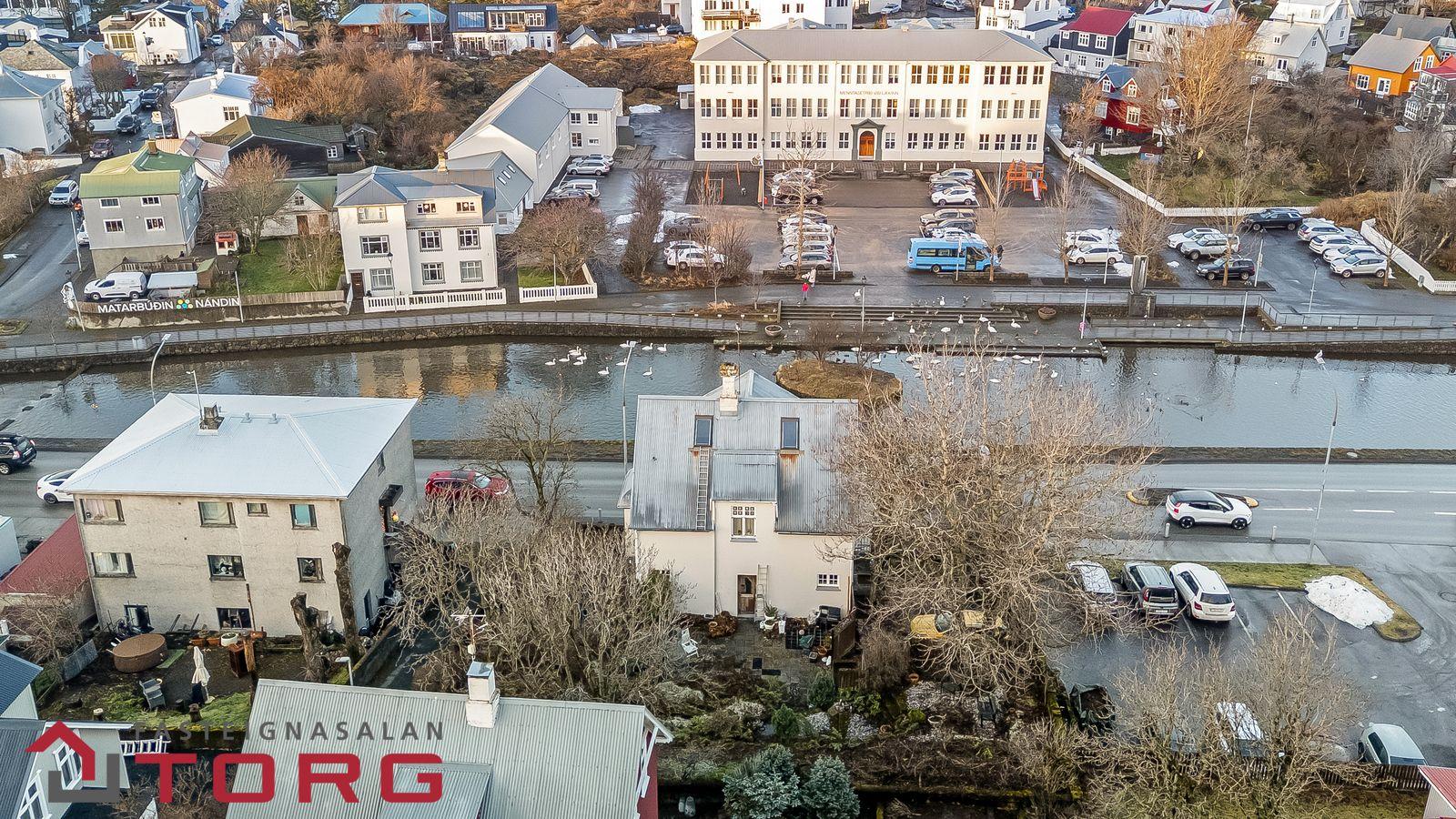 NÁNARI LÝSING : Mið hæð : komið er inn í flísalagða forstofu með fatahengi. Þaðan er komið inn í rúmgott hol með náttúruflísum á gólfi. Rúmgóð og björt stofa og borðstofa með fiskabeina parketi á gólfi. Mjög fallegir kverklistar og rósettur í loftum, fiskabeinaparketi á gólfum. Gluggar á þrjá vegu. Eldhúsið var endurnýjað fyrir um 20 árum síðan. Sér smíðuð innréttingu með miklu skápa plássi, flísar á milli skápa, mahogny borðplötur, stór gaseldavél, tengi fyrir uppþvottavél, náttúruflísar á gólfi. Opið er inn í borðstofu frá eldhúsi. Efri Hæð : Frá holi miðhæðar er rúmgóður stigi upp á efri hæðina. Komið er upp á gang með parketi á gólfi, við enda gangsins er útgengt út á litlar svalir sem snúa út að læknum. Rúmgott hjónaherbergi með fataherbergi innaf, parket á gólfi. Annað rúmgott herbergi með parketi á gólfi. Baðherbergi með sturtuklefa og fallegu standandi pottjárns baðkari, flísar á gólfi og veggjum. Gott þvottahús með dúk á gólfi. Innbyggðum geymsluskápur undir stiga. Efsta hæð : Frá holi miðhæðar er stigi upp á rishæðina. Komið er upp í rúmgott sjónvarpshol með gluggum á tvo vegu. Möguleiki á að útbúa gott svefnherbergi. Stórt svefnherbergi með parketi á gólfi. Annað minna herbergi með parketi á gólfi. Kjallari : Frá holi miðhæðar er steyptur stigi niður í kjallarann. Komið er í rúmgott hol með skápum. Mjög rúmgott herbergi/stofa með parketi á gólfi. Innaf því er annað rúmgott herbergi með parketi á gólfi. Baðherbergi með sturtuklefa, flísar á gólfi. Mjög rúmgóð geymsla er inn af holi. Annað : Búið er að skipta um alla glugga í húsinu fyrir utan 2 í risi. Einnig hafa frárennsislangir verðið endurnýjaðar og dren langir einnig. Skipt var um járn á þaki fyrir ca. 25 árum síðan.