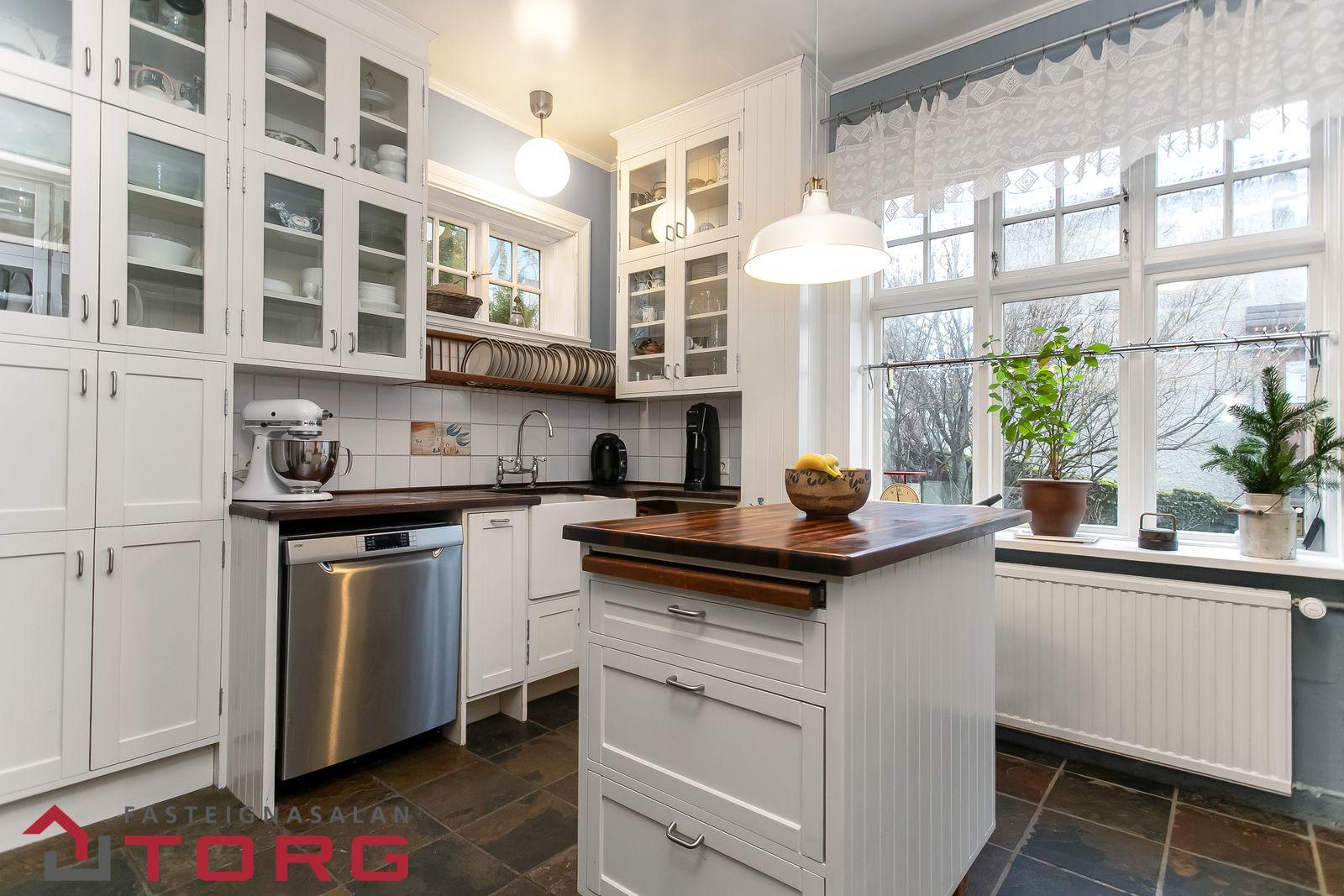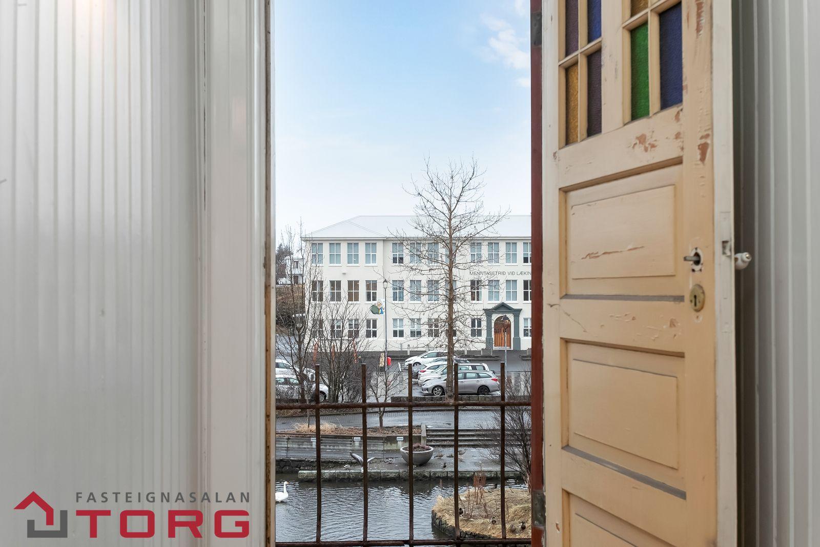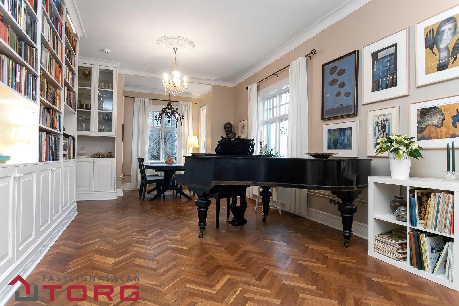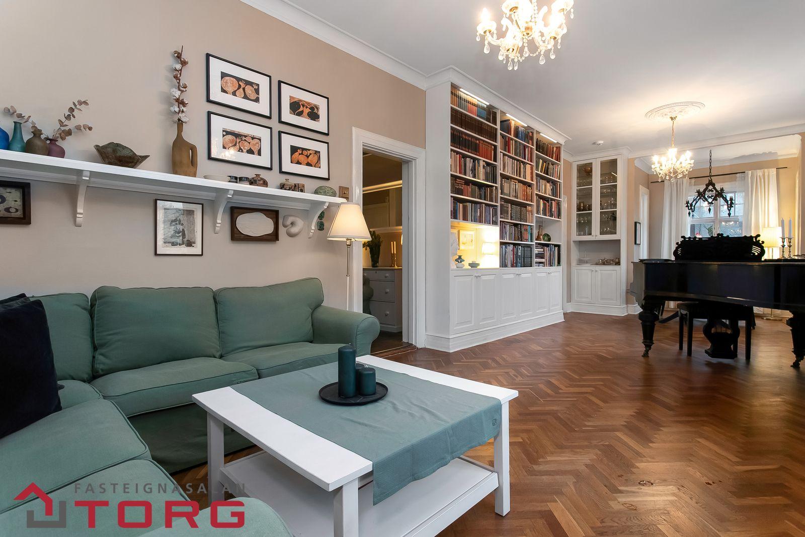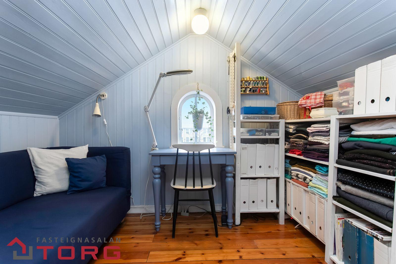 NÁNARI LÝSING : Mið hæð : komið er inn í flísalagða forstofu með fatahengi. Þaðan er komið inn í rúmgott hol með náttúruflísum á gólfi. Rúmgóð og björt stofa og borðstofa með fiskabeina parketi á gólfi. Mjög fallegir kverklistar og rósettur í loftum, fiskabeinaparketi á gólfum. Gluggar á þrjá vegu. Eldhúsið var endurnýjað fyrir um 20 árum síðan. Sér smíðuð innréttingu með miklu skápa plássi, flísar á milli skápa, mahogny borðplötur, stór gaseldavél, tengi fyrir uppþvottavél, náttúruflísar á gólfi. Opið er inn í borðstofu frá eldhúsi. Efri Hæð : Frá holi miðhæðar er rúmgóður stigi upp á efri hæðina. Komið er upp á gang með parketi á gólfi, við enda gangsins er útgengt út á litlar svalir sem snúa út að læknum. Rúmgott hjónaherbergi með fataherbergi innaf, parket á gólfi. Annað rúmgott herbergi með parketi á gólfi. Baðherbergi með sturtuklefa og fallegu standandi pottjárns baðkari, flísar á gólfi og veggjum. Gott þvottahús með dúk á gólfi. Innbyggðum geymsluskápur undir stiga. Efsta hæð : Frá holi miðhæðar er stigi upp á rishæðina. Komið er upp í rúmgott sjónvarpshol með gluggum á tvo vegu. Möguleiki á að útbúa gott svefnherbergi. Stórt svefnherbergi með parketi á gólfi. Annað minna herbergi með parketi á gólfi. Kjallari : Frá holi miðhæðar er steyptur stigi niður í kjallarann. Komið er í rúmgott hol með skápum. Mjög rúmgott herbergi/stofa með parketi á gólfi. Innaf því er annað rúmgott herbergi með parketi á gólfi. Baðherbergi með sturtuklefa, flísar á gólfi. Mjög rúmgóð geymsla er inn af holi. Annað : Búið er að skipta um alla glugga í húsinu fyrir utan 2 í risi. Einnig hafa frárennsislangir verðið endurnýjaðar og dren langir einnig. Skipt var um járn á þaki fyrir ca. 25 árum síðan.