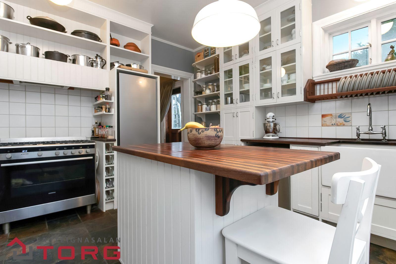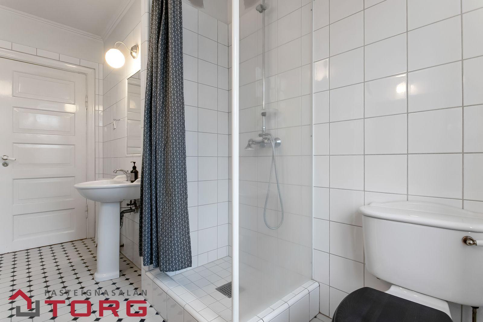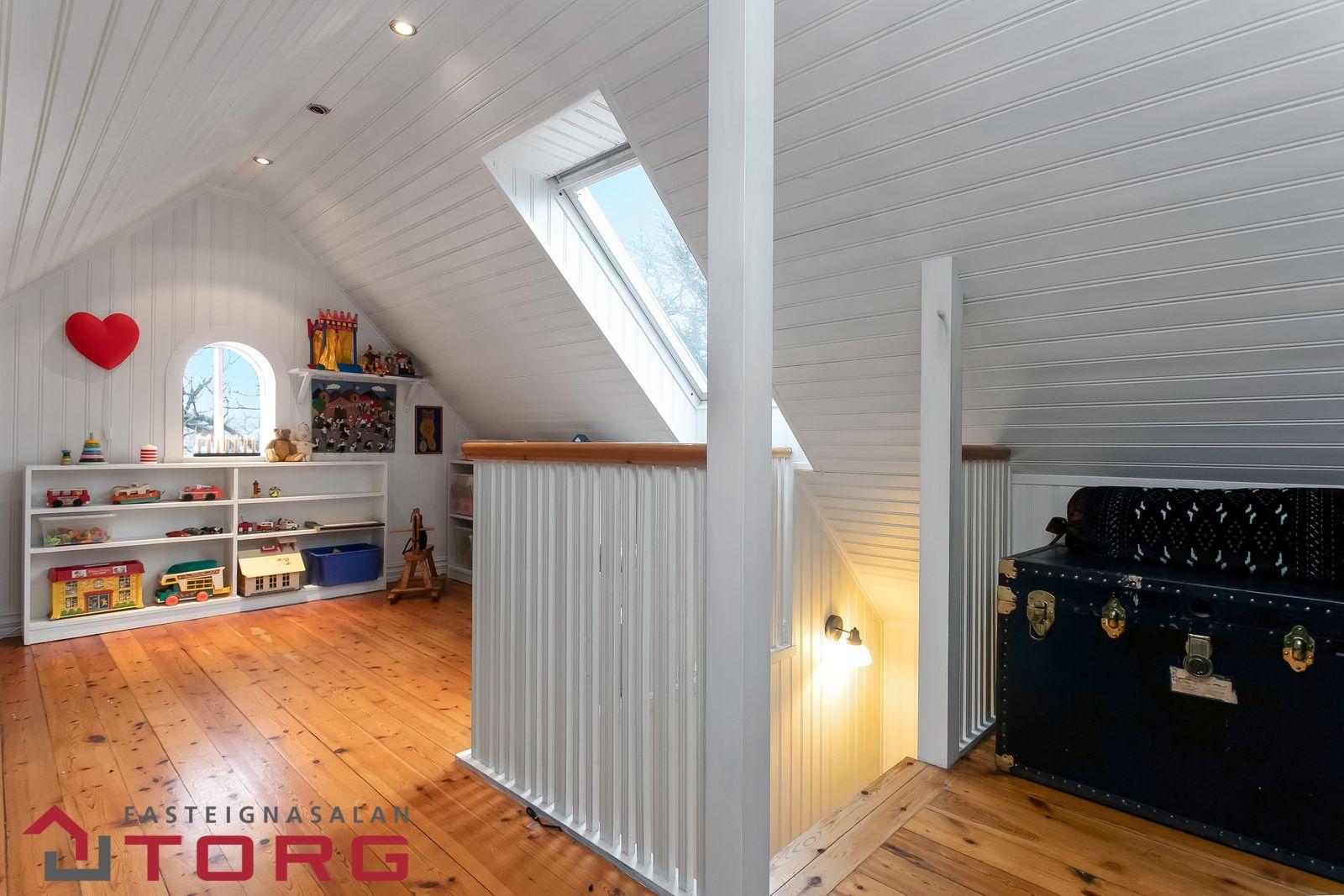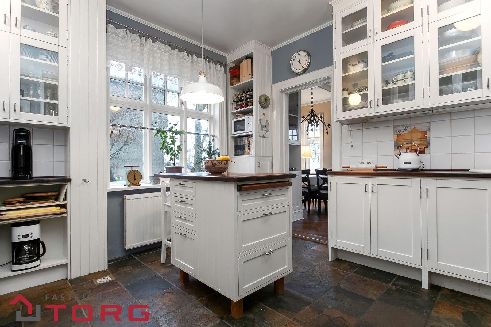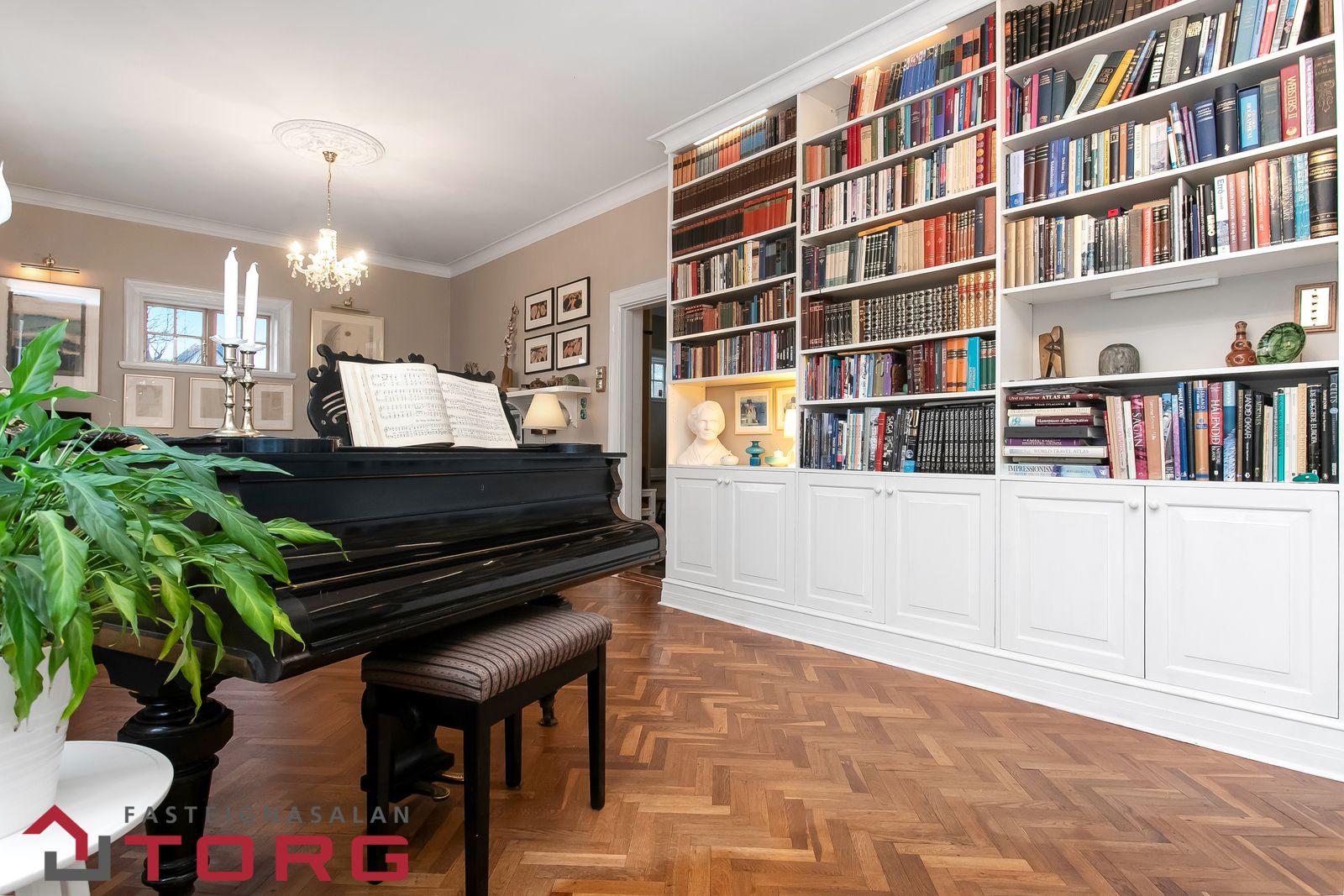 NÁNARI LÝSING : Mið hæð : komið er inn í flísalagða forstofu með fatahengi. Þaðan er komið inn í rúmgott hol með náttúruflísum á gólfi. Rúmgóð og björt stofa og borðstofa með fiskabeina parketi á gólfi. Mjög fallegir kverklistar og rósettur í loftum, fiskabeinaparketi á gólfum. Gluggar á þrjá vegu. Eldhúsið var endurnýjað fyrir um 20 árum síðan. Sér smíðuð innréttingu með miklu skápa plássi, flísar á milli skápa, mahogny borðplötur, stór gaseldavél, tengi fyrir uppþvottavél, náttúruflísar á gólfi. Opið er inn í borðstofu frá eldhúsi. Efri Hæð : Frá holi miðhæðar er rúmgóður stigi upp á efri hæðina. Komið er upp á gang með parketi á gólfi, við enda gangsins er útgengt út á litlar svalir sem snúa út að læknum. Rúmgott hjónaherbergi með fataherbergi innaf, parket á gólfi. Annað rúmgott herbergi með parketi á gólfi. Baðherbergi með sturtuklefa og fallegu standandi pottjárns baðkari, flísar á gólfi og veggjum. Gott þvottahús með dúk á gólfi. Innbyggðum geymsluskápur undir stiga. Efsta hæð : Frá holi miðhæðar er stigi upp á rishæðina. Komið er upp í rúmgott sjónvarpshol með gluggum á tvo vegu. Möguleiki á að útbúa gott svefnherbergi. Stórt svefnherbergi með parketi á gólfi. Annað minna herbergi með parketi á gólfi. Kjallari : Frá holi miðhæðar er steyptur stigi niður í kjallarann. Komið er í rúmgott hol með skápum. Mjög rúmgott herbergi/stofa með parketi á gólfi. Innaf því er annað rúmgott herbergi með parketi á gólfi. Baðherbergi með sturtuklefa, flísar á gólfi. Mjög rúmgóð geymsla er inn af holi. Annað : Búið er að skipta um alla glugga í húsinu fyrir utan 2 í risi. Einnig hafa frárennsislangir verðið endurnýjaðar og dren langir einnig. Skipt var um járn á þaki fyrir ca. 25 árum síðan.