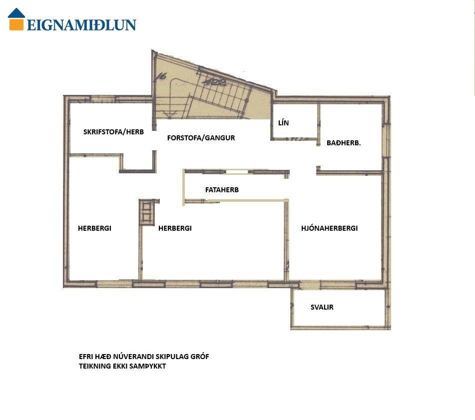 EFRI HÆÐ: 4 svefnherbergi, baðherbergi, og línherbergi.
