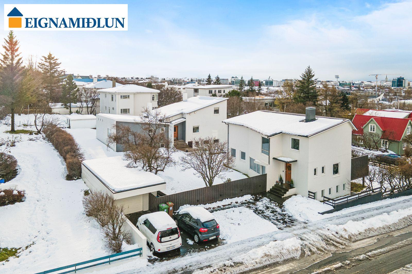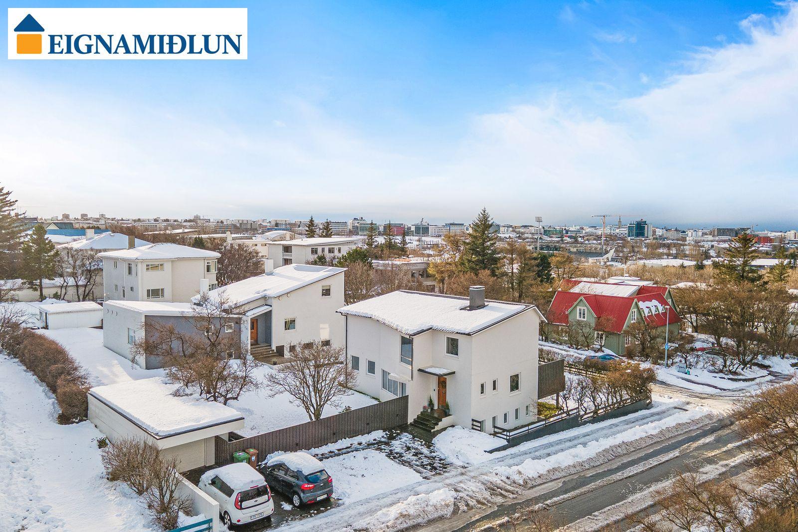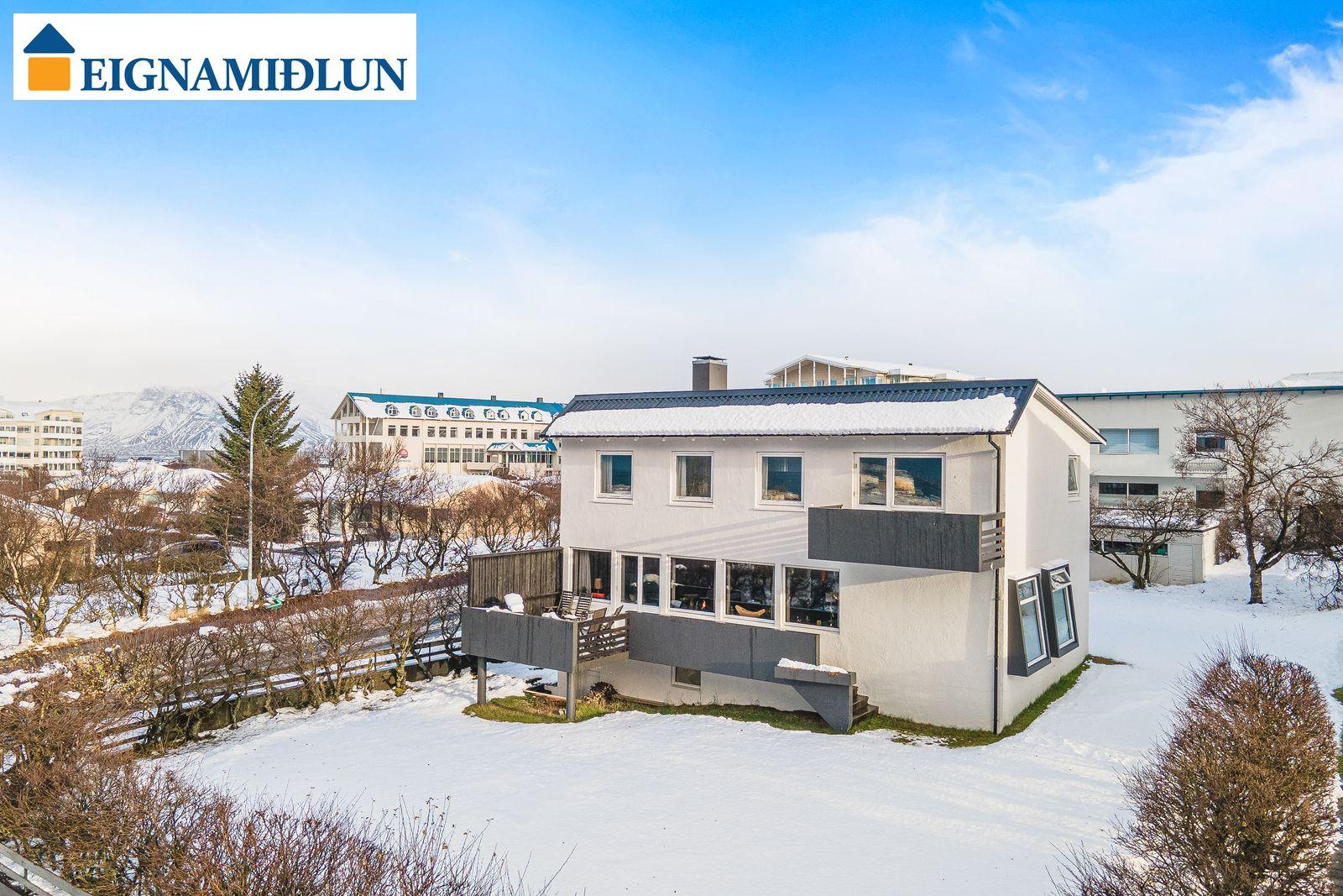 Kleifarvegur 1, mikið endurnýjað og frábærlega staðsett 240.1 fm einbýlishús sem er kjallari og tvær hæðir á flottum útsýnisstað í 104. Endurnýjað eldhús, baðherbergi, gólfefni, raflagnir, innihurðir og fleira. Tvennar svalir. 4 svefnherbergi, baðherb og gestasnyrting. Arinn í stofu. Bílskúr er skráður 32 fm. Talsvert af bílastæðum við húsið. Húsið stendur á stórri hornlóð með einstaklega góðu útsýni til vesturs yfir bæinn og sundin allt að Snæfellsjökli. Hús teiknað af Sigvalda Thordarsyni. Eigendur skoða skipti á minni eign - leitið upplýsinga.