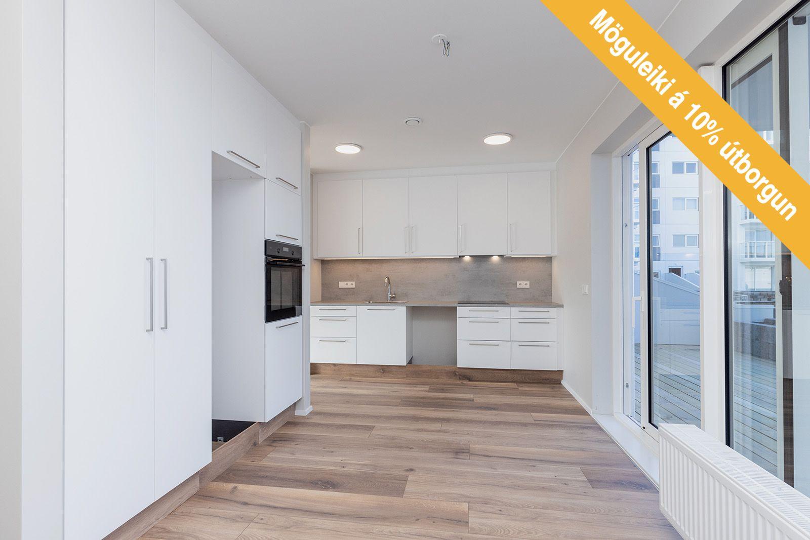 ÖXAR20 er ný fjármögnunarleið sem getur hentað vel til að binda minna eigið fé í húseign, lækka lántöku, lækka greiðslubyrði eða auka möguleika á greiðslumati hjá fjármálastofnun. Sjá nánar inná www.oxar20.is - Sölumaður veitir frekari upplýsingar.Íbúð merkt 404 - 4ra herbergja 111,4 fm íbúð á fjórðu hæð með þrem svefnherbergjum og rúmgóðum svölum bæði út frá eldhúsi og einnig stofu. Rúmgott svefnherbergi og tvö minni barnaherbergi, baðherbergi, eldhús afgirt að hluta inn í borðstofu og stofu. Bílastæði í bílakjallara. Virkilega fallegt útsýni úr þessari íbúð. Allar íbúðir eru með sér loftræstikerfi sem stuðlar að heilbrigði húss og íbúa, auk orkusparnaðar sem skilar allt að 80% endurnýtingu á varma. Vönduð innrétting fyrir þvottavél og þurrkara á baðherbergi. Svalir með rennihurð.Nánari upplýsingar veitir: Gunnar Bergmann löggiltur fasteignasali í síma 839-1600 eða gunnarbergmann@eignamidlun.isSmellið hér fyrir heimasíðu verkefnisins og skilalýsinguNánari lýsing:Komið er inn forstofu með fataskápum.