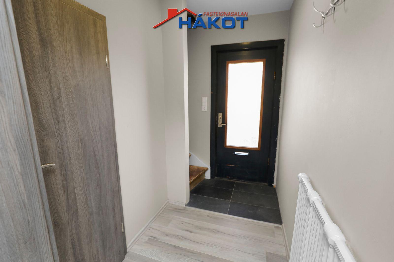Forstofa (flísar, stigi upp (timbur) í ris).